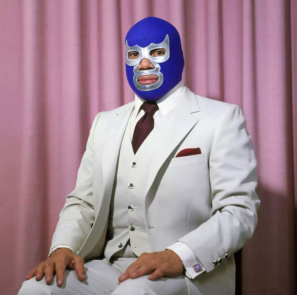 Personal identity takes center stage in many of the artworks, such as Lourdes Grobet’s arresting portrait of Blue Demon. “The reality is that for wrestlers of this caliber, you never take your mask off,” explains Morales. For many wrestlers, that means that identity is a clean slate that can be invented, idealized, and exhibited on the wrestler’s terms.