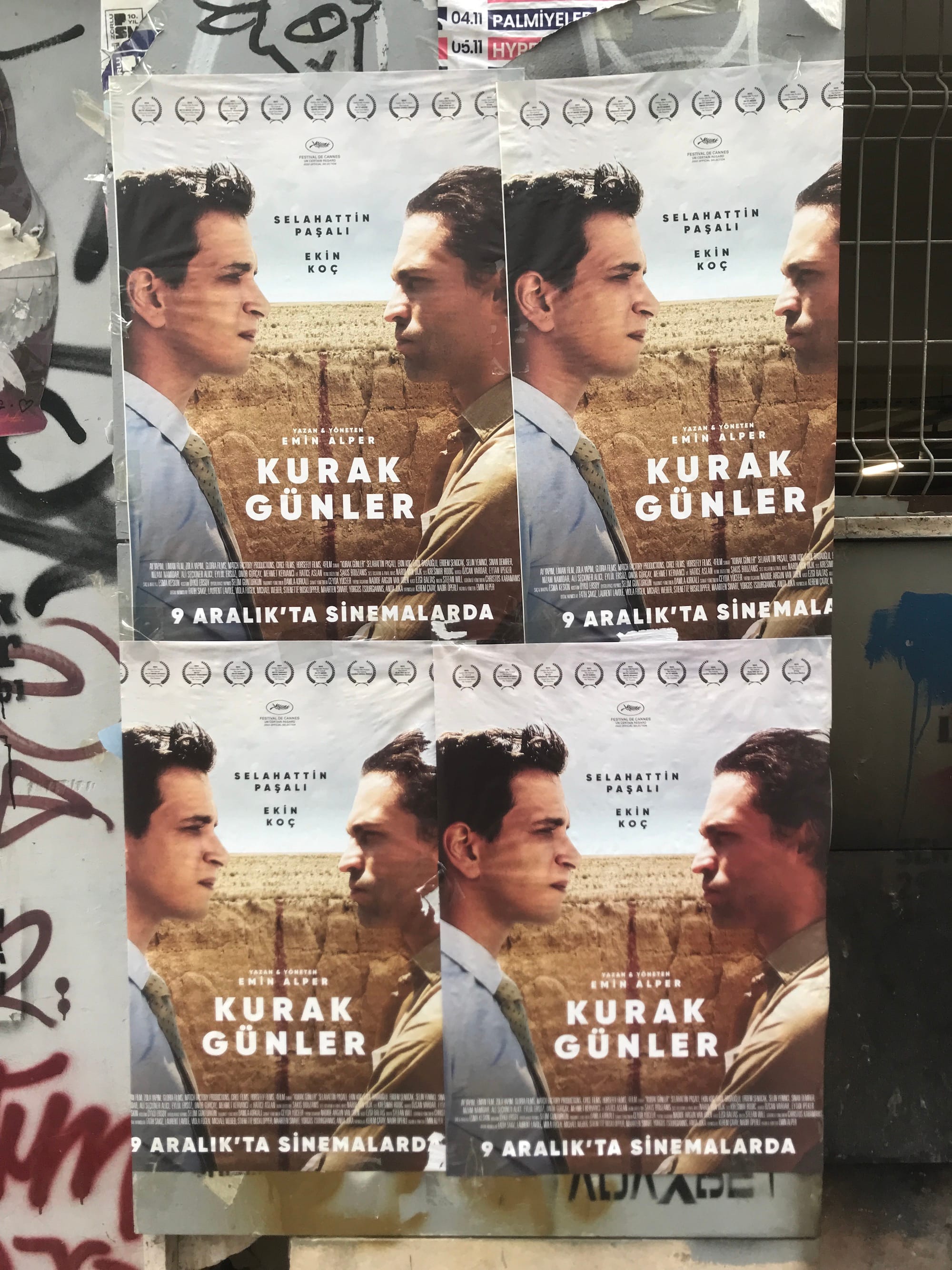Posters for Emin Alper's Kurak Günler (2022) (photo Jennifer Hattam/Hyperallergic)