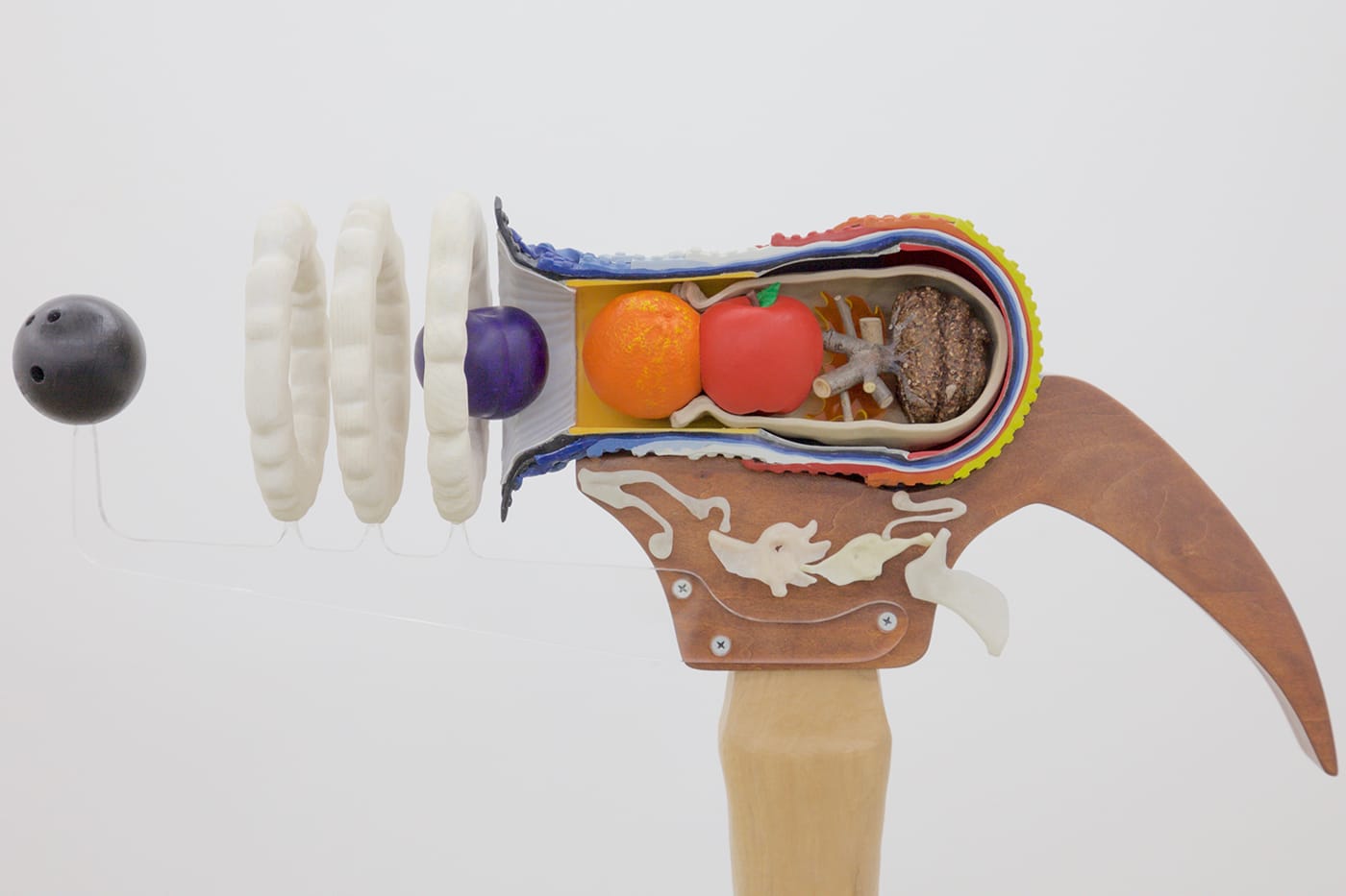 Benjamin Reiss’s intricate sculptures take the deadpan detail of scientific models and add a healthy dose of the absurd. Take for instance, “Firearm (Flintlock) (Plumb Tree)” (2018), a cross-section of a hammer, that is revealed to be a gun, that holds not bullets but fruit, and also a miniature bowling ball that exits the barrel through rings of smoke frozen in midair. In the two-person exhibition Very Quiet, Reiss is paired with Michael Kennedy Costa, whose meditative works on paper provide a foil to Reiss’s impeccable weirdness. Atop monochrome grids of sheets of paper taped together, Kennedy Costa draws intimate, irregular forms that resemble topographical maps or perhaps a replicating virus viewed through a microscope.