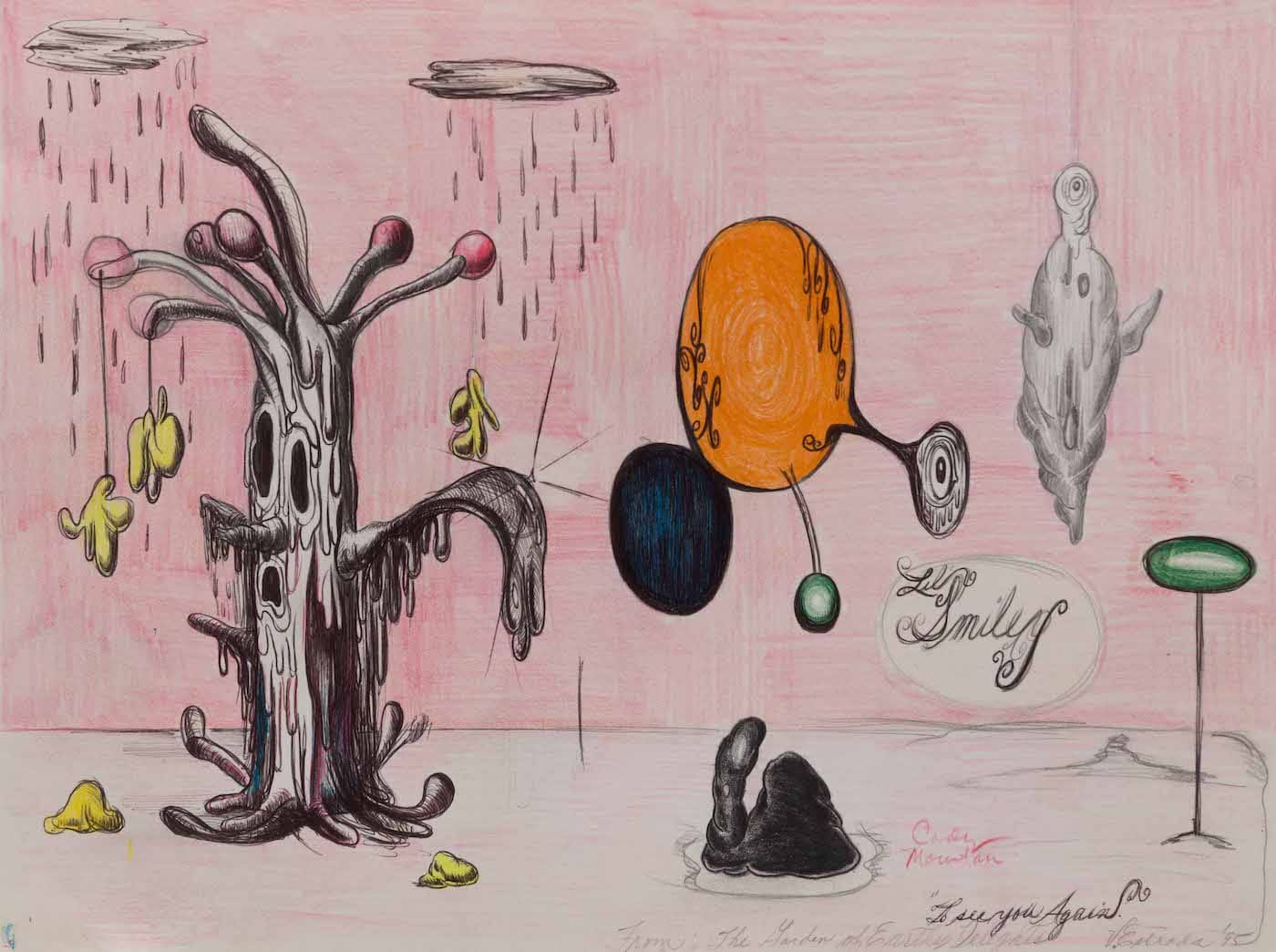 Victor Estrada’s work is quintessentially Angeleno: exuberant, messy, grotesque, pop, and hard to define. Estrada grew up between LA and El Paso, and was a member of the Chicano activist group MEChA as a teen, before attending ArtCenter College of Design in Pasadena. He garnered national attention when “Baby/Baby” (1991), his massive foam sculpture depicting two big babies joined by a towering phallus, was included in the groundbreaking 1992 MOCA exhibition Helter Skelter: LA Art in the 1990s. Purple Mexican, named for a hybrid strain of marijuana, is a 30-year survey of his drawings, paintings, and sculpture showcasing his broad spectrum of influences from gritty punk aesthetics, to Chicano graphics and cartoon fantasy.