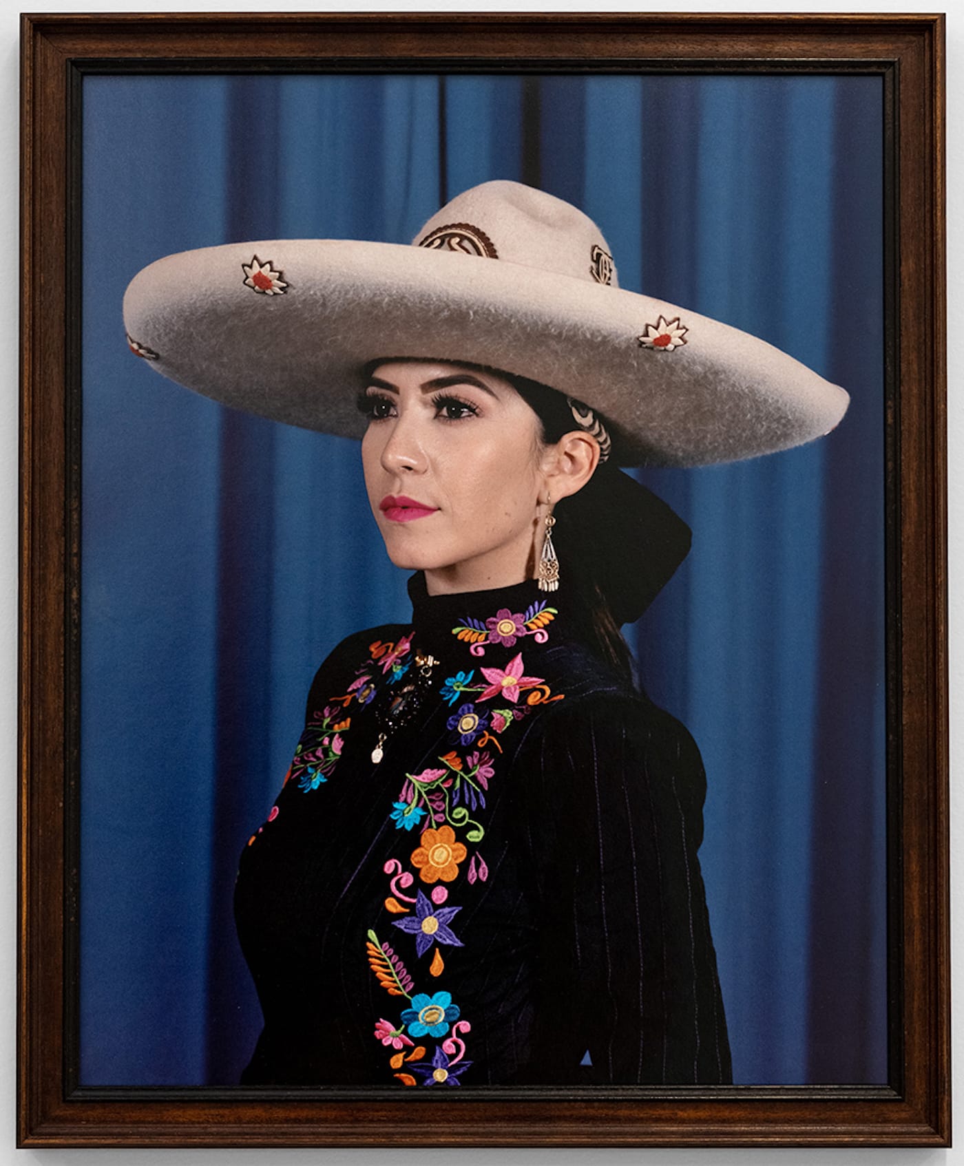 Charrería is a Mexican equestrian event that features horseback riding, rodeo, and various ranch activities. It developed in the haciendas of colonial Mexico, and has been designated as the country’s official national sport. Tierra del Sol is an exhibition of Carlos Jaramillo’s photographs from California’s largest charreada, “El Classico del las Americas,” at the Pico Rivera Sports Arena in October 2021. His images portray smartly outfitted charros and escaramuzas during competitions, and in posed photographs taken in a makeshift portrait studio on site. Hay bales and a dirt floor in the gallery provide a physical extension of the work on the walls.