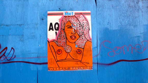 The majority of photographs in Street Art New York — a new book of street art images by Jaime Rojo and Steven P. Harrington, the overseers of the influential and very active street art website Brooklyn Street Art — exemplify this failing. The photographic persona in these images is a latent gallerist. The picture frame acts like a gallery frame. Their extremely tight framing eliminates nearly all artistic context — in some cases there is no clear sign that the piece is even on the street (see page 58). The images are utterly disembodied and dislocated.