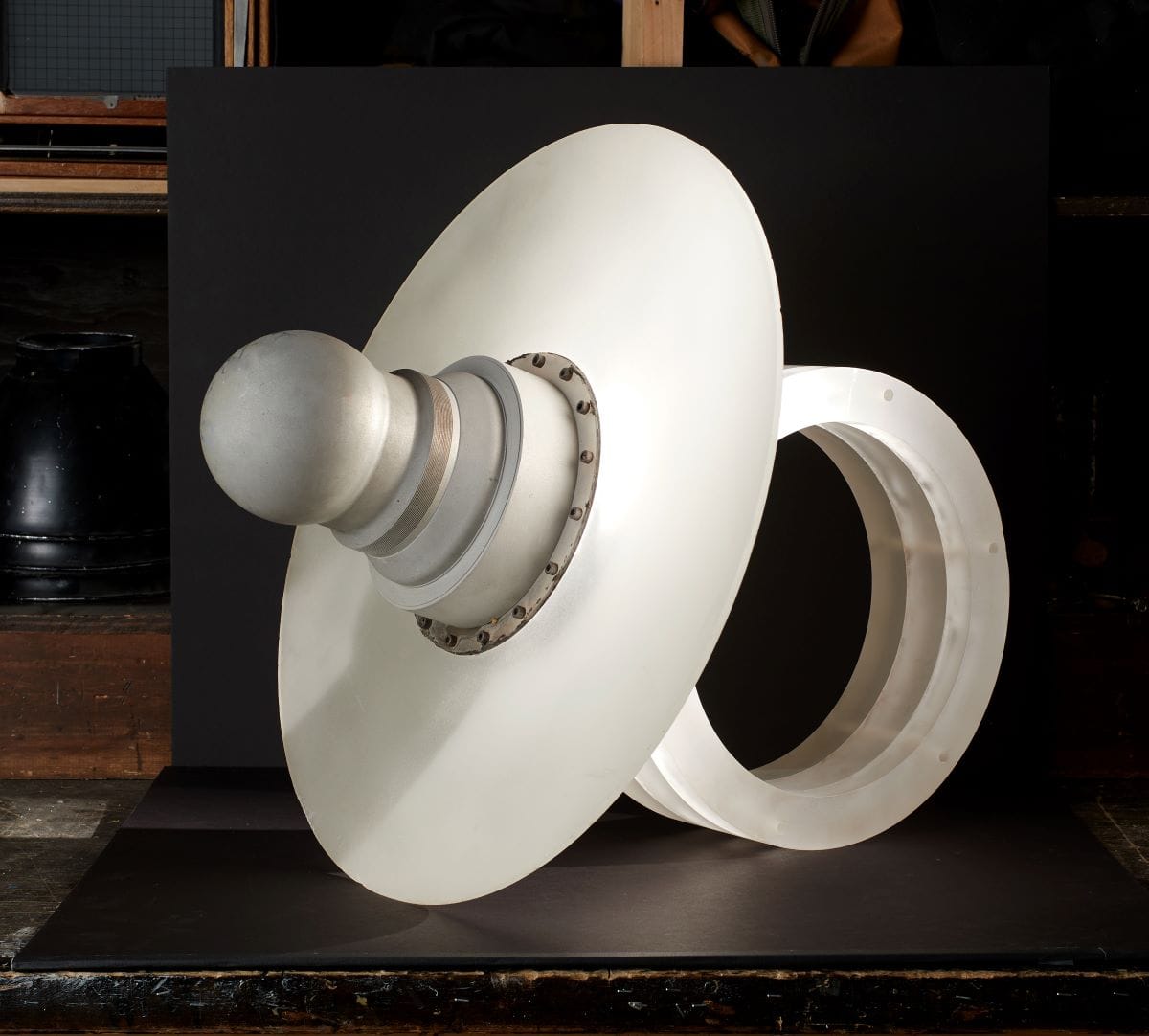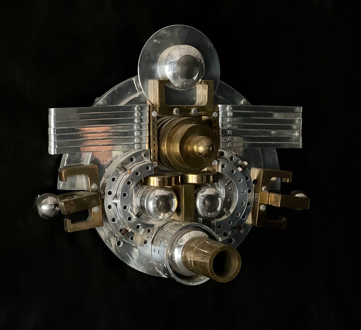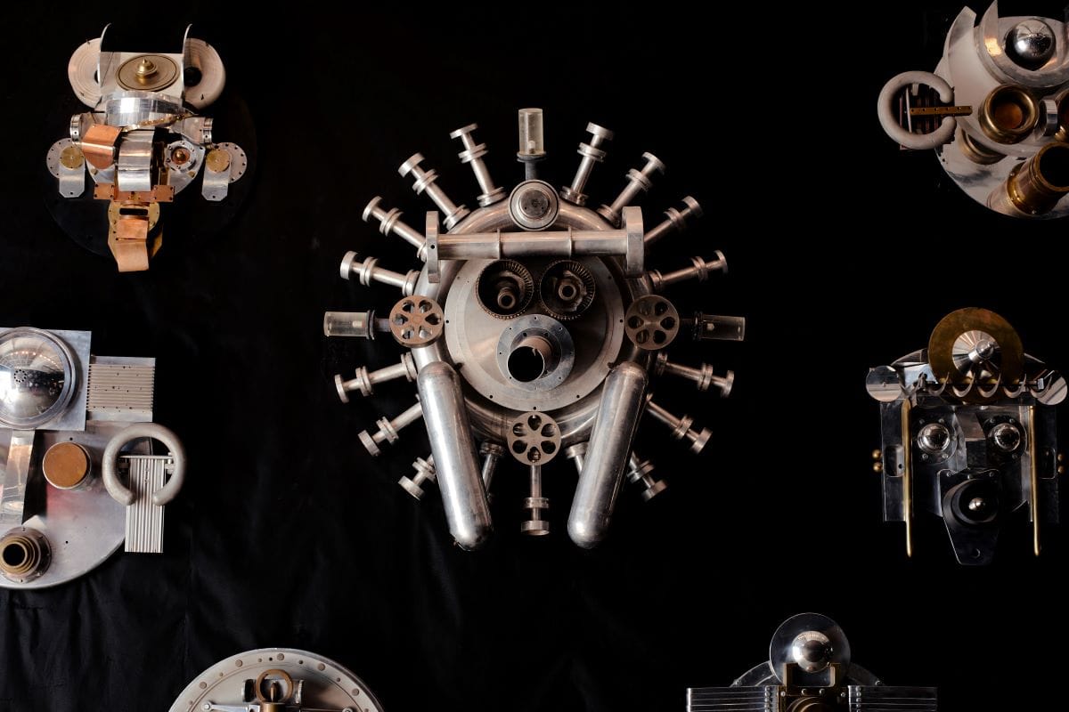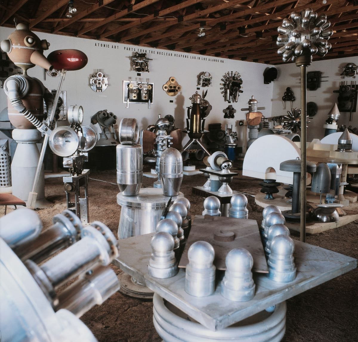 Following his European travels, Price moved to El Rancho, New Mexico, and discovered a nearby salvage yard heaped with cast-off materials from the Los Alamos National Laboratory, the former headquarters of the Manhattan Project. For over 30 years thereafter, he amassed eerily elegant shrapnel from earth-shattering scientific experiments to create anti-nuclear protest art.