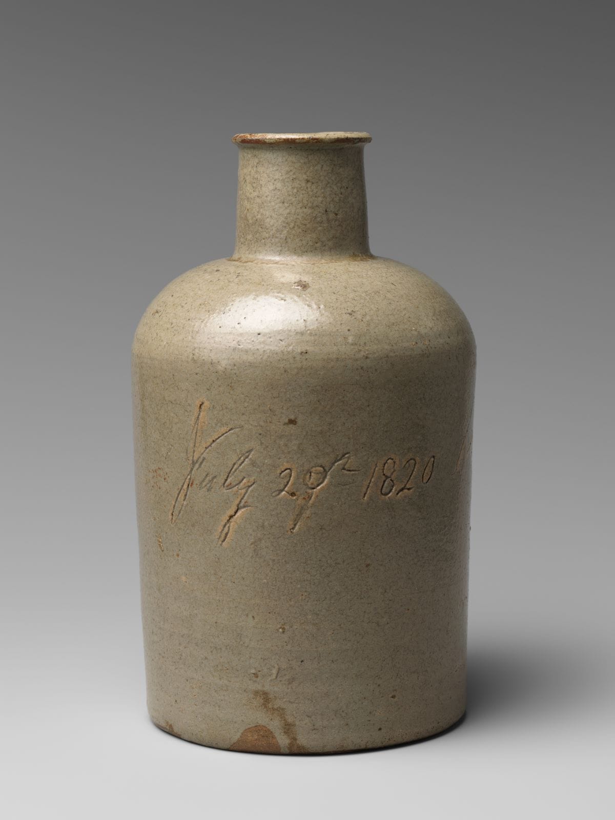 Although The Met has collated Drake’s vessels from the late 1830s to the 1850s, the latest known Drake vessel is dated 1865 — this marks the end of the Civil War, when Drake was freed from slavery. Trekking through this exhibition, one is confronted with a critical and oft-elided lesson: Slave labor was not inexpert but often the work of skilled artisans. The profundity of Drake’s towering vessels inspires esteem — as Arthur Goldberg and Deborah Goldberg note, most Edgefield potters turned pots of three to five gallons in size, while Drake “routinely produced jars of 10 gallons capacity and turned pieces as large as 40 gallons in size.” This is all the more impressive when we consider how contemporary potters like Mark Hewitt, Daniel Johnston, and Kim Jones, who are part of the “Monumentalism” movement that strives to turn large-scale ceramics, create pots of 20 gallons.