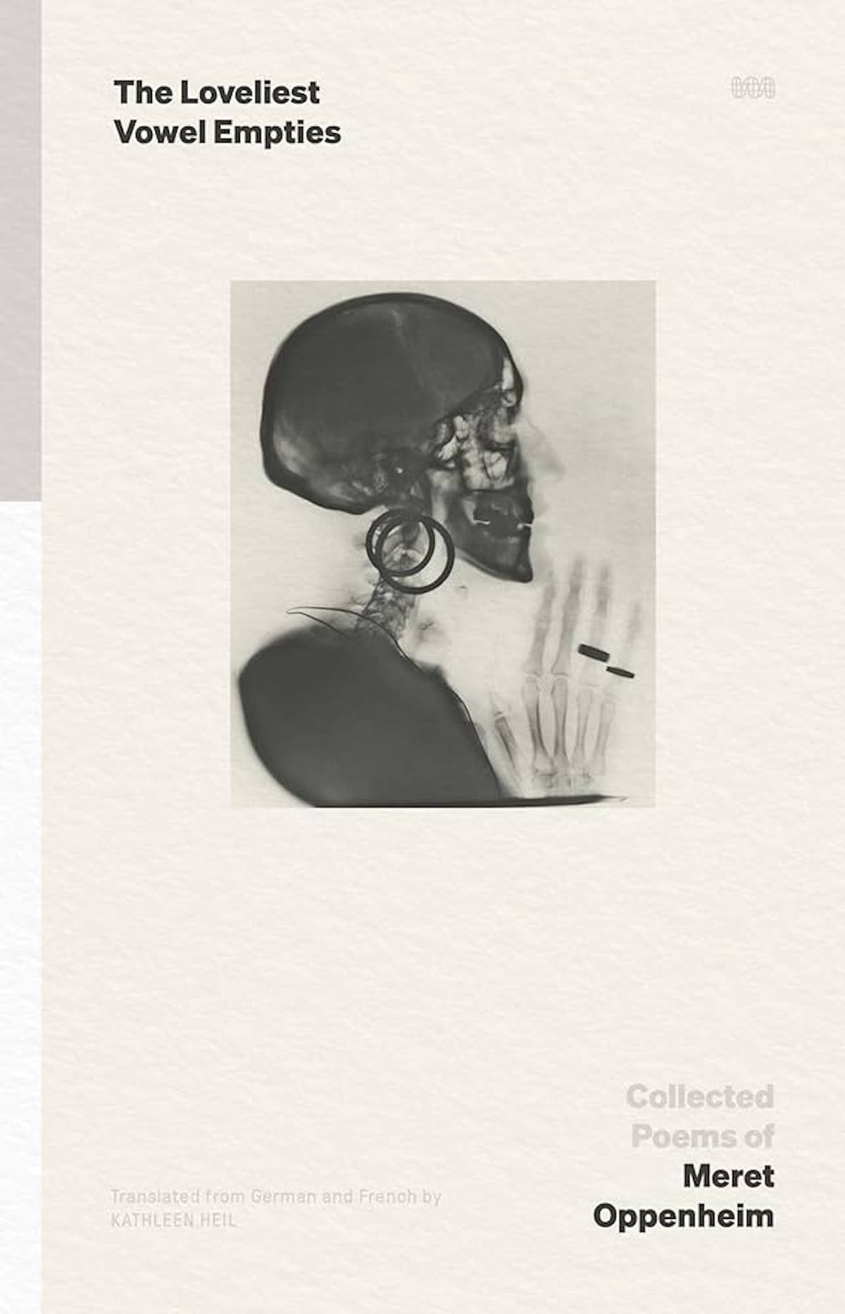When the Swiss-born artist Meret Oppenheim (1913–1985) received the Art Award of the City of Basel in 1975, she said in her acceptance speech: “Nobody will give you freedom … you have to take it.” Oppenheim lived by this credo beginning early in her life. After reading Carl Jung when she was 14, she began the lifelong practice of recording her dreams. At 18, she moved to Paris to study art, and met Alberto Giacometti and Hans Arp, who invited her to contribute work to the Surrealist exhibition in the “Salon des Surindépendants.” Best known for “Object” (1936), a fur-lined teacup, spoon, and saucer in the collection of the Museum of Modern Art, Oppenheim’s art cannot be categorized. In addition to making sculpture and painting, as well as everything in between and outside these practices, Oppenheim wrote poetry. The publication of The Loveliest Vowel Empties: Collected Poems of Meret Oppenheim, translated from the French and German by Kathleen Heil, reveals another facet of this fascinating, inspiring, trailblazing figure. Largely written between 1933 and 1944, the poems are enigmatic and strange. Inspired by Jung’s writings, Oppenheim rejected the binary of male and female, believing each gender possessed characteristics of the other, that men were capable of “feeling, sensing, intuition. Her prose poem, “As though awake while asleep seeing hearing,” begins “Asleep Astor saw him hearing.” The poem ends with: “When he awoke the next day, he found himself hanging on an unfamiliar coat hanger. In the pocket he found a calling card, printed with his new name: Caroline.” —John Yau