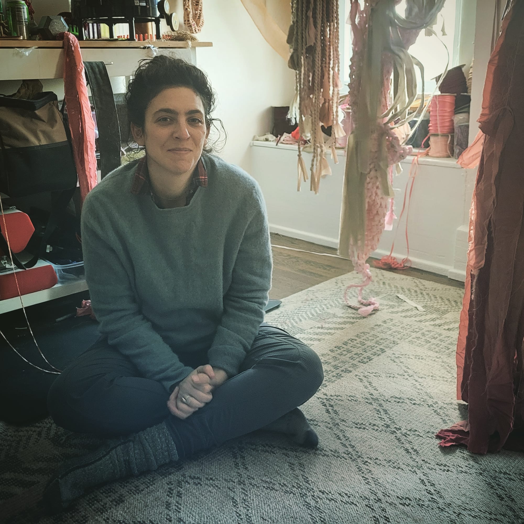 On a subsequent semester in Los Angeles, Shulman began to formalize a rope-making process, salvaging pounds upon pounds of secondhand bedsheets, cleaning them, cutting them, dying them, spooling them onto bobbins and making ropes, then sculpting the rope through an additive process of knitting, or cutting away at them and letting them unwind. During that semester, Shulman interned at Tanya Aguiñiga's studio, working very closely with her then-production manager, Sovonchan Sorn, and her then-studio manager, Dana Funaro, who taught Shulman to loom knit. Now all of Shulman’s three-dimensional works are knitted, with variations made through the material, size of looms, and “cadence” of intervals in the weave.