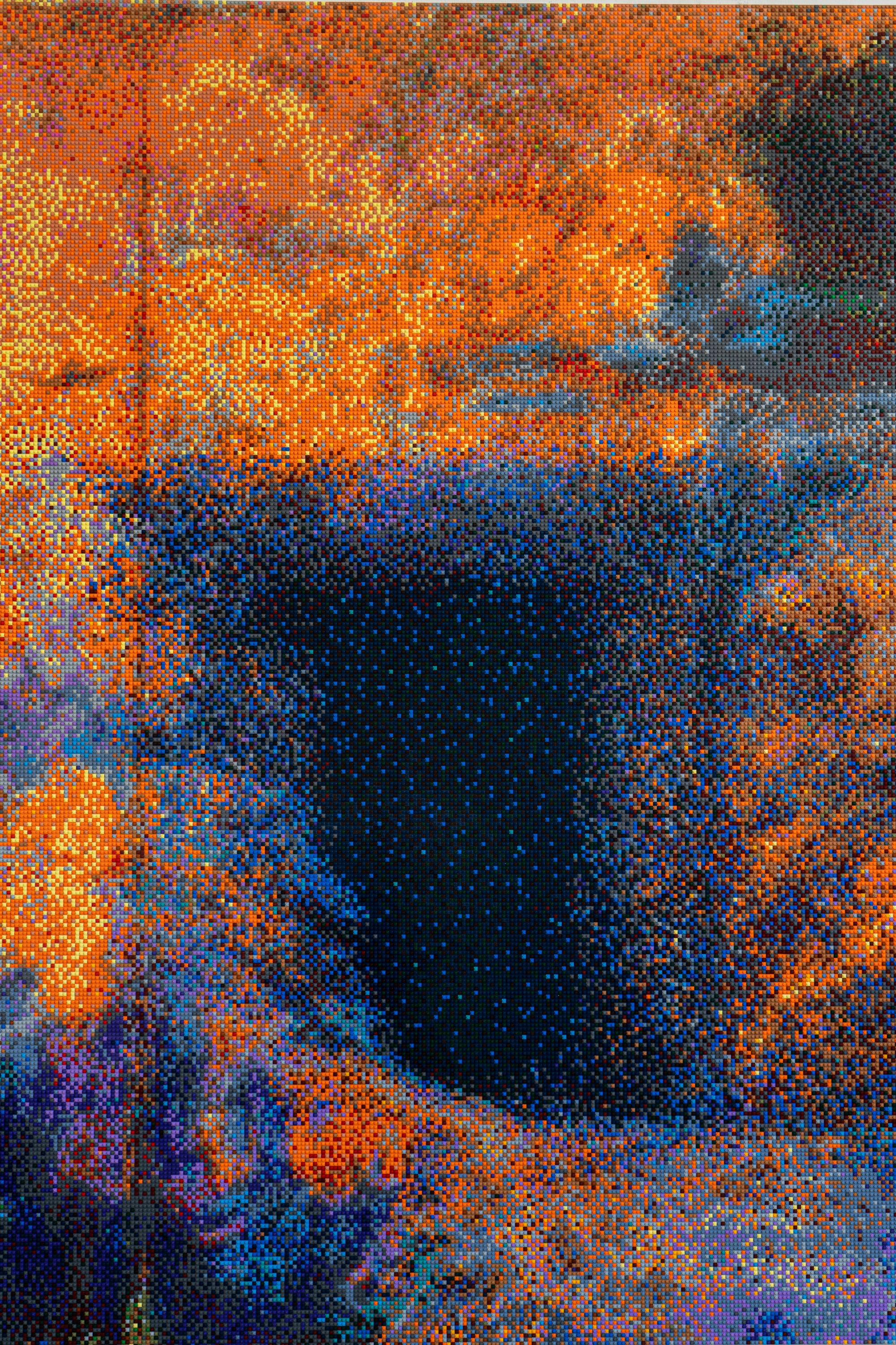 "Water Lilies #1" is nearly 50 feet wide and features 650,000 LEGO bricks in 22 different colors. The effect, even in pictures, evocatively abstracts the dreamy aesthetics of Monet's original work. It includes an additional element, courtesy of Ai — the depiction of a dark doorway creating a sucking portal in and out of the mural.