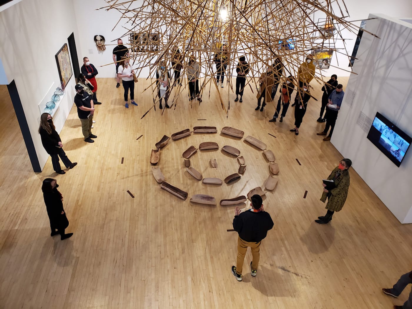 Exhibition walkthrough of Exposure: Native Art and Political Ecology at the Armory Center for the Arts, 2023 (photo by Milly Correa, courtesy Armory Center for the Arts)