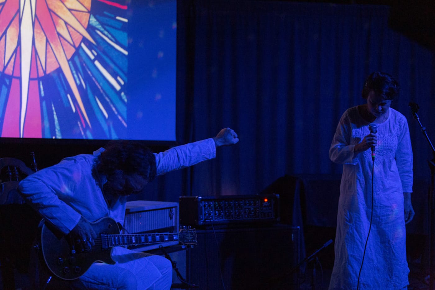 The Lord + Petra Haden perform at the opening of the 2022 Fulcrum Festival: Deep Ocean/Deep Space. (photo by and courtesy Ian Byers-Gamber)