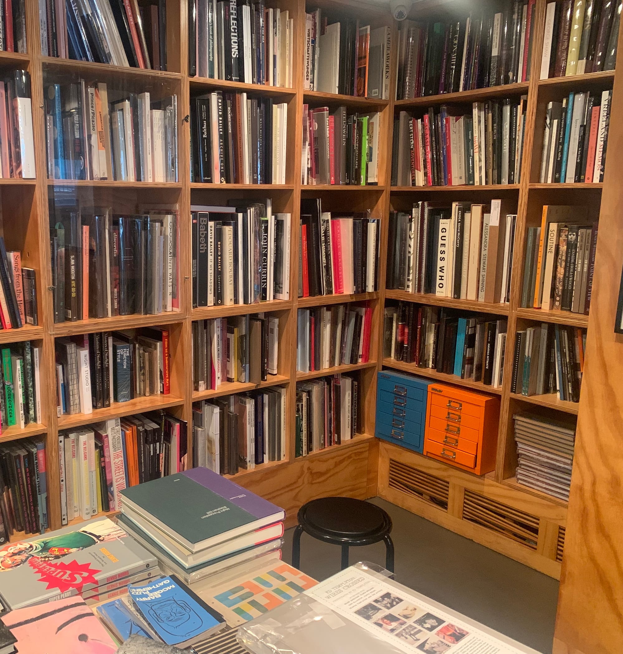 Hidden below street level on Noho's Bond Street, I nearly passed by Dashwood Books’s snug storefront. Pine-colored shelves encase a trove of art book gems that founder David Strettel and manager Miwa Susuda summoned from nooks and piles when I inquired about the titles that stand out to them. It came as no surprise, then, when Strettel noted that Dashwood will soon mark 18 years of “specializing in finding what people want,” though he admitted that the only real pattern of what people want is that “there is no pattern” — which is part of the fun. His grounding interest in photography guides the store's focus, and they ventured into publishing books in collaboration with artists around 2008. In-store events held in the cozy back area launch each artist zine, published on a roughly monthly basis. Dashwood's currently in the midst of planning later 2023 publications featuring artists like photographer Daidō Moriyama and Stefan Marx, whose primary passion lies in sketching airplanes.