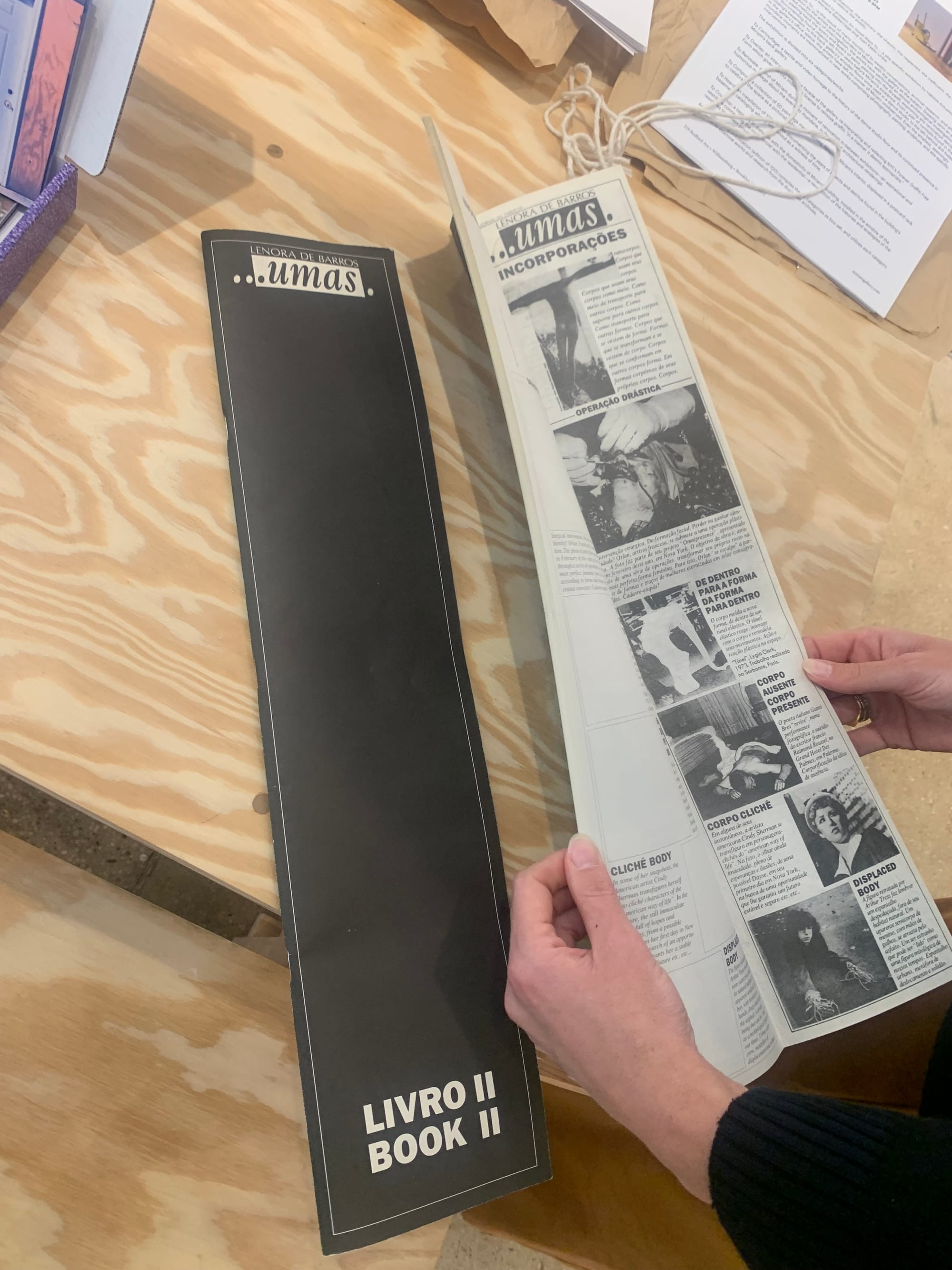 This same spirit of partnership and interconnection suffuses their recent exhibition catalogue, Six Good Ways To…, a box containing one printed item per artwork by collective Hábitos Actuales. The catalogue plays on the seemingly endless stream of online tutorials quantifying the exact number of ways to do just about anything. I was especially intrigued by an accordion fold-out of blue-tinted photos and a usable carbon-copy paper notepad. A table in the front room awash with artist’s books and titles of all sizes houses other unusual printed materials, with a bent toward limited editions and carefully constructed zines. Dooner pointed out a number of zines by small press GenderFail, including Dana Kopel’s dispatches from museum union organizing and advice for art workers in Against Artsploitation: Unionizing the New Museum (Inga, 2022). It is a particularly pertinent read during a time when museum and other arts workers are organizing simply for livable pay and conditions.