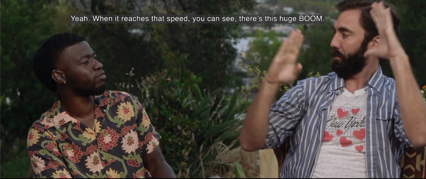 One way she does that is by featuring spoken dialogue, ASL, and written captions all on equal footing, without prioritizing audio as hearing audiences are used to. Sounds swell and cut out abruptly, leading to an unsettling feeling for those relying exclusively on sound to guide their experience.