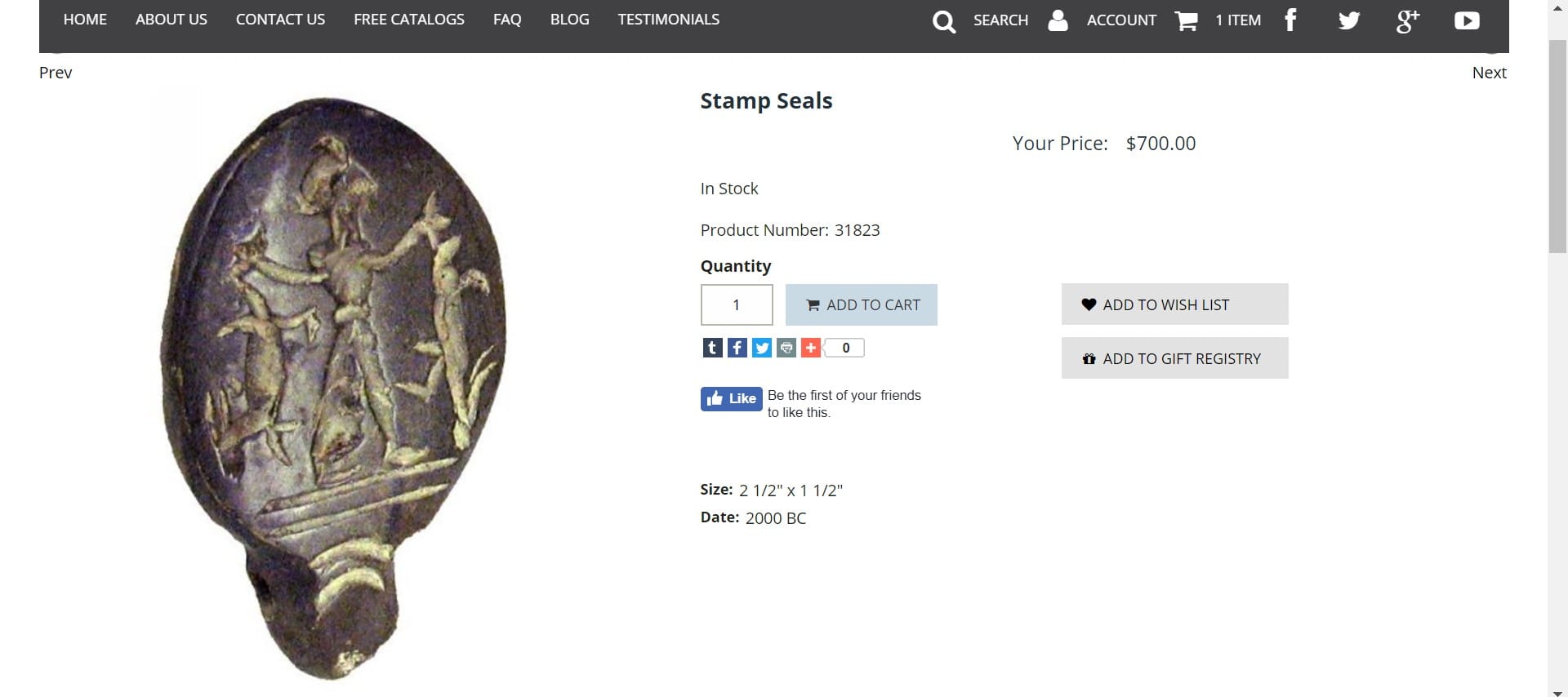 Later that night, I found out that the “authentic artifacts” I had seen that afternoon in glass display cases were also available for purchase online at Sadigh Gallery in New York City. Together with University of Iowa Art History Associate Professor Björn Anderson, we concluded that most (if not all) the objects included in the exhibition were neither rare nor authentic, but instead modern-day forgeries. The exhibition was canceled three days before its opening.