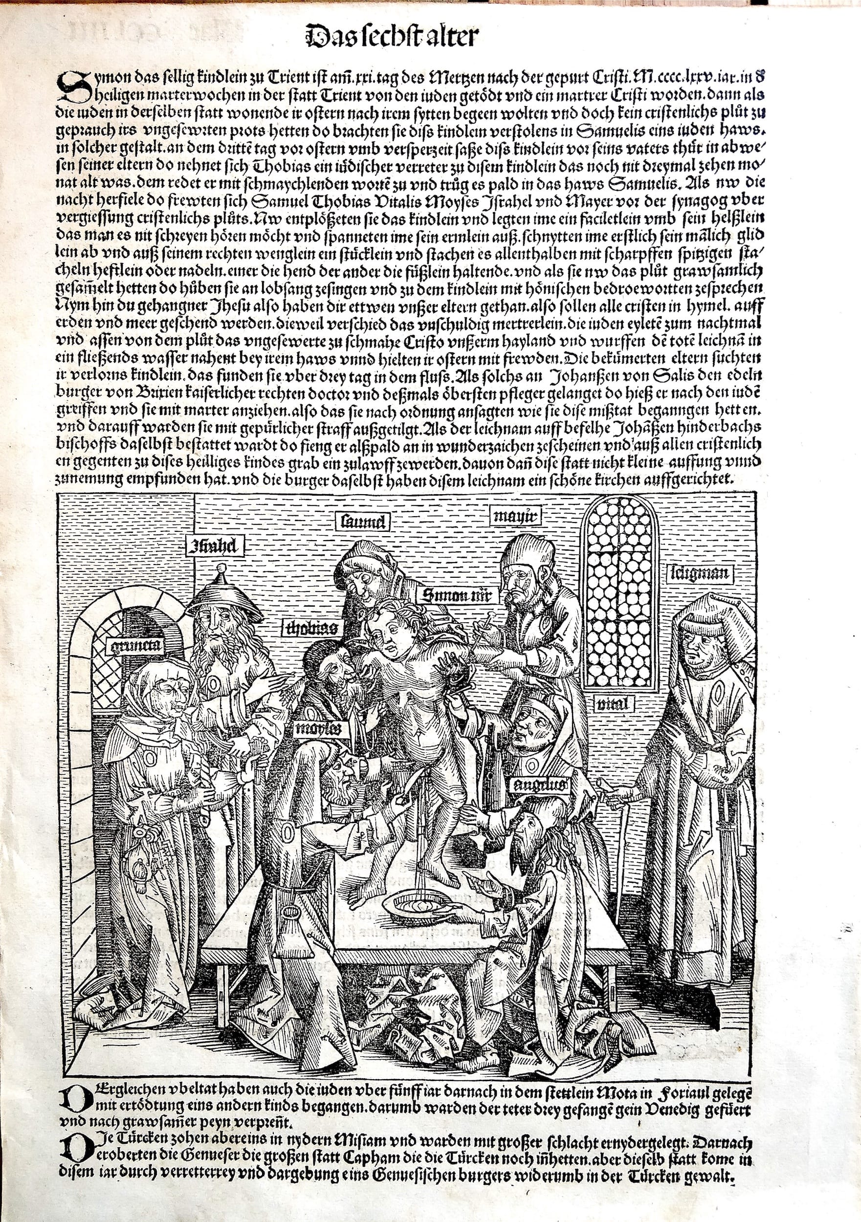 With the development of the printing press in the 1400s, the means to relentlessly disseminate anti-Jewish and anti-Black ideology flooded European society. “When there is a technological innovation it is often harnessed to disseminate hatred,” Teter told me in conversation. On view is Liber chronicarum (Nuremberg Chronicle, 1493), rife with derogatory stories about Jews. Teter’s new book, Christian Supremacy: Reckoning with the Roots of Antisemitism and Racism (Princeton), traces the legal basis and common struggle of antisemitism and Black racism to early ideologies of Christian theology and White domination.