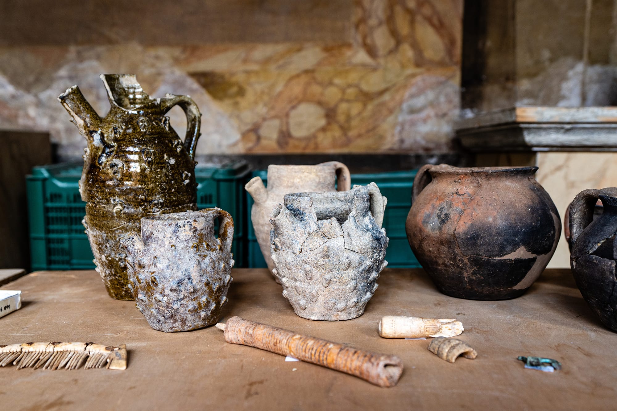Aside from the "sumptuous marble columns" and "refined stuccoed decorations with gold leaf" mentioned in the statement, the archaeological team unearthed a wide variety of ancient to Medieval glassware, cookware, ceramics, combs carved from bone, beaten roads, and rosary bead construction tools, yielding information about the activities onsite from theater productions and pilgrimages to the tomb of Saint Peter beneath Saint Peter's Basilica in Vatican City.