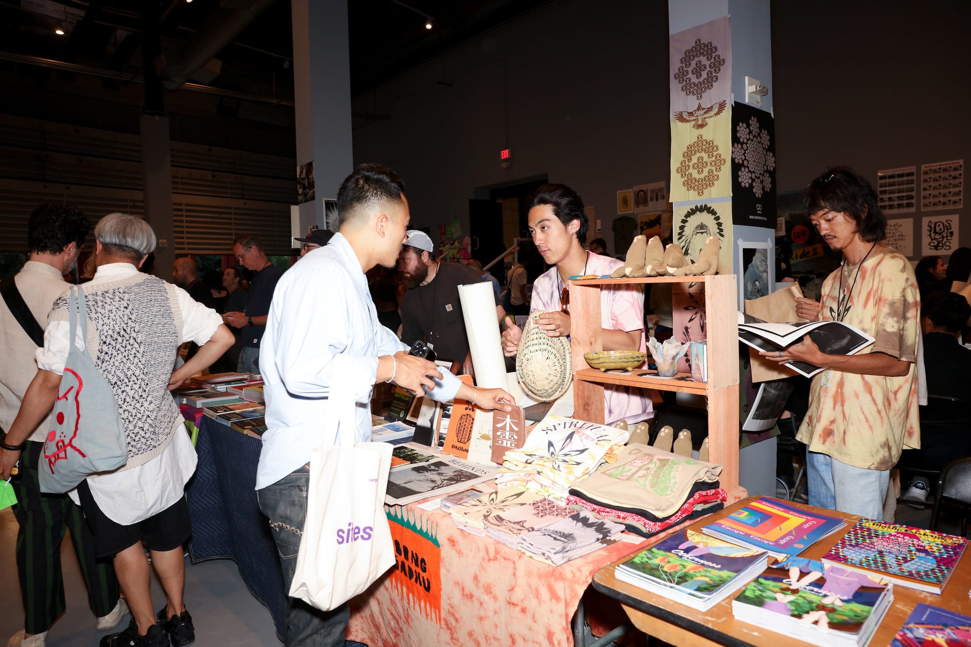 Hordes of visitors swarmed the booths filled with zines, photographs, prints, books, clothing, and ephemera offered by more than 300 international exhibitors showcasing their wares across two cavernous buildings of the Geffen Contemporary at the Museum of Contemporary Art (MOCA). On the terrace, people danced joyously to the music of Black ensemble Pan Afrikan Peoples Arkestra & Friends. Across the fair sections, including Exhibitor Projects, Rare/Op, Photography, Friendly Fire (which highlights social justice organizations and politically minded artist publishers), and Zines/Small Press, visitors chatted and flirted. First-time and international exhibitors seemed especially excited to be at the fair, back in LA for the first time since its pandemic-induced hiatus in 2019. Altogether, the booths suggest a publishing landscape as quirky and diffuse as Los Angeles itself.
