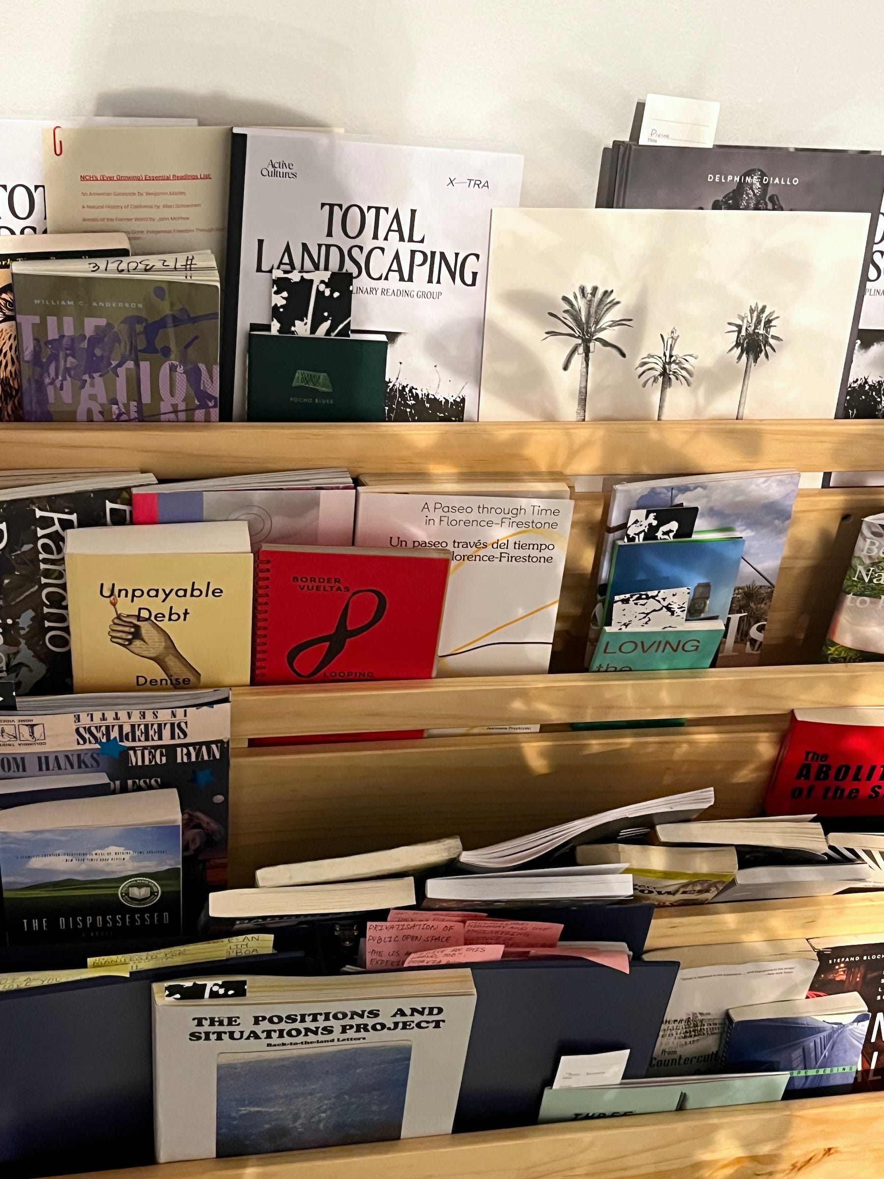 Total Landscaping, a collaboration between X-tra, founded in 1997 and the longest-running art publication in Los Angeles, and Active Cultures, a nonprofit that explores the convergence of contemporary art and food, takes an innovative approach to “printed matter.” A garden of quotations, a reading room, an invitation to record a voicemail advocating for the protection of the city’s Verdugo Mountains, and printouts of the evolving People’s Environmental Impact Report are all part of the presentation. The collaborative exhibition emerged from discussions at a reading group that meets at orange groves and strip malls around Los Angeles.