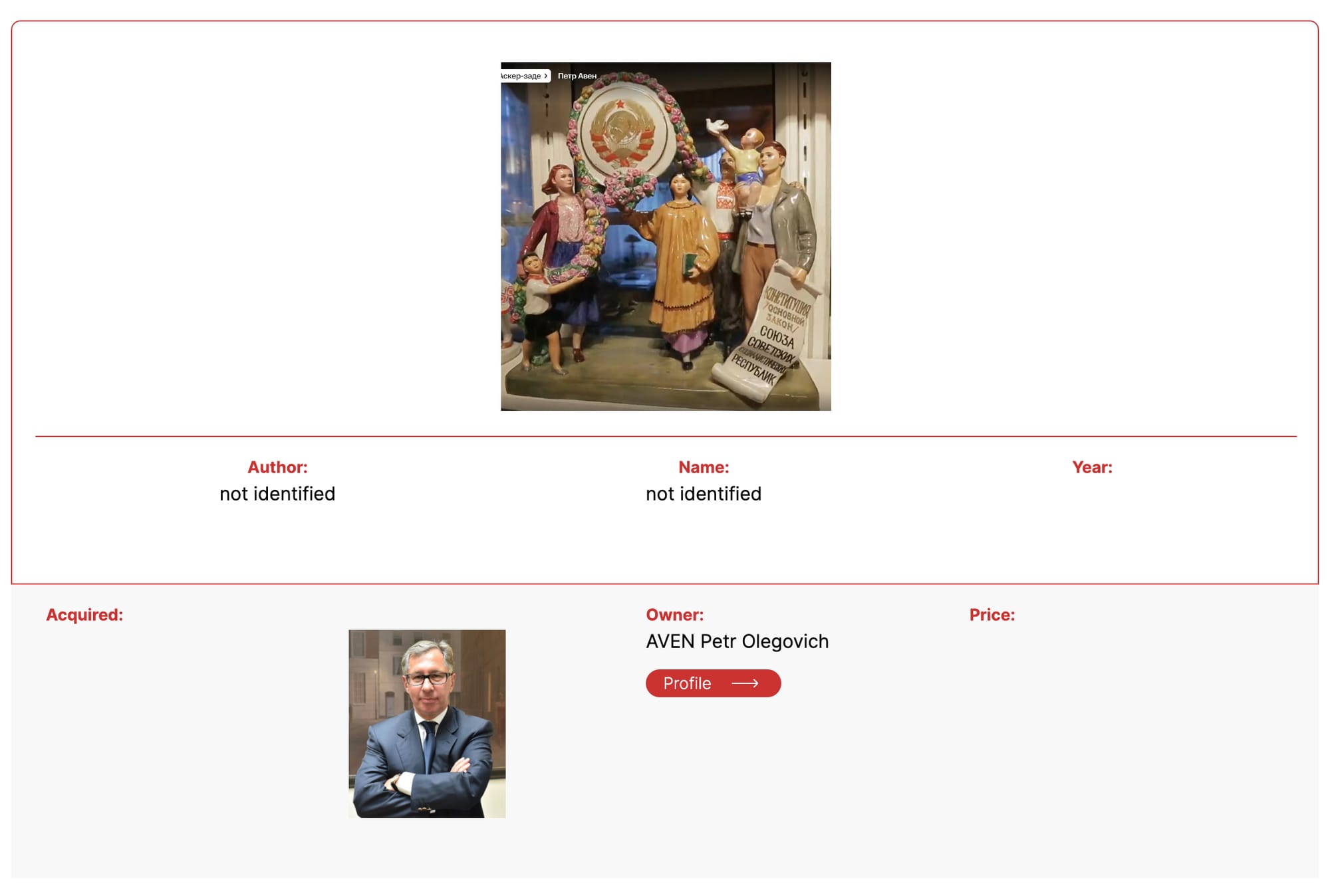 Hyperallergic reviewed the open-source database featuring over 300 art objects, examining their estimated value and reported owners to determine the art tastes of the richest Russian tycoons. Below are some gems in the database’s collection.