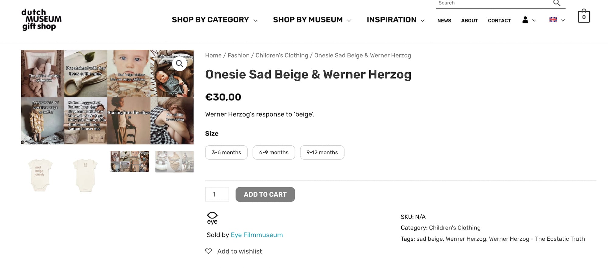 “Our museum shop developed an original design of t-shirts and onesies (in a very limited edition of 30 T-shirts and 45 onesies) with the term 'Sad Beige' printed on them,” the Filmmuseum wrote DeRoche.