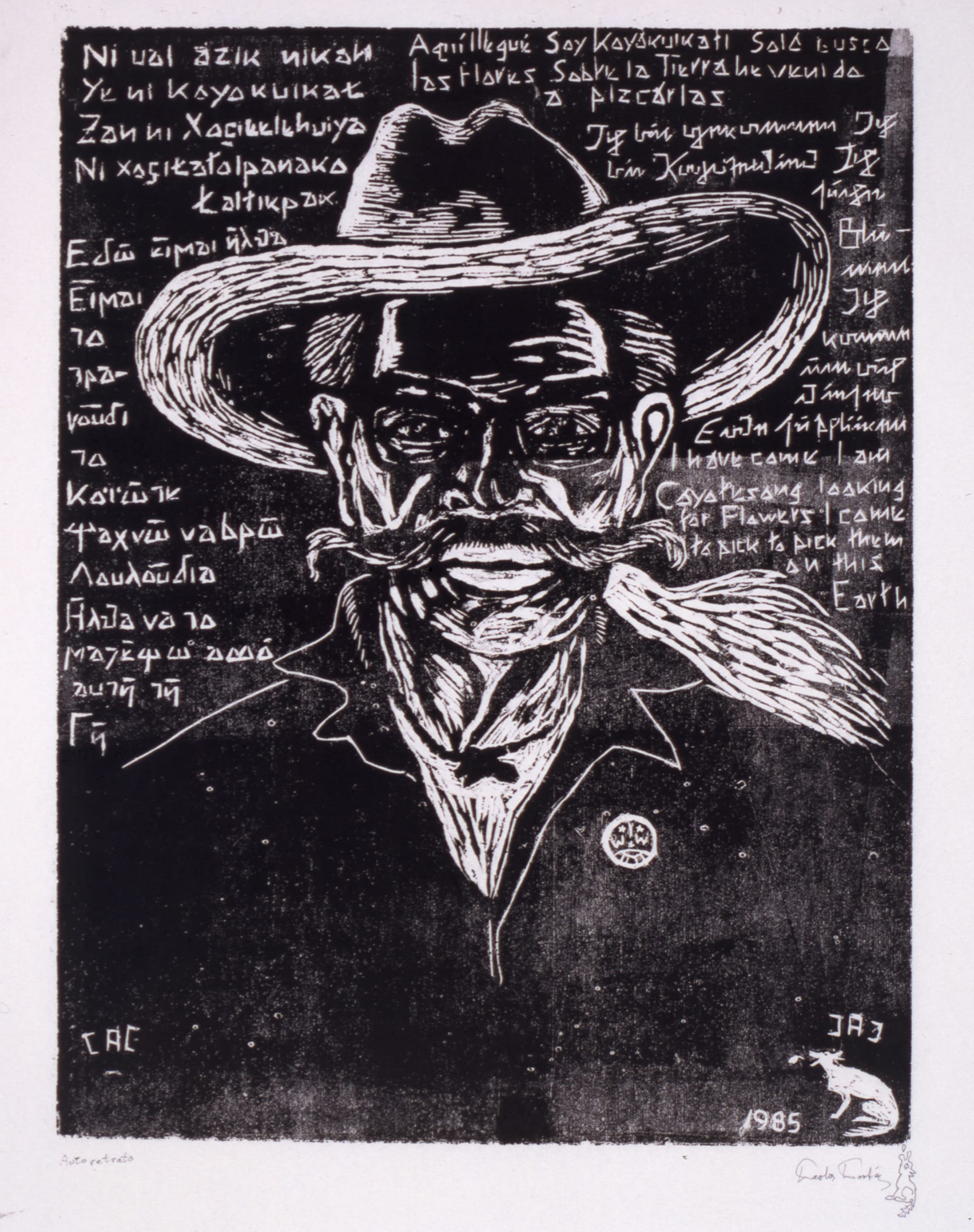 The solidarity with international workers that defined the life and art of Carlos Cortéz was already apparent in 1944 when the 21-year-old Chicano socialist received his draft notice. Cortéz refused to serve in a conflict he believed pitted workers against one another and spent the next 18 months in prison — an experience that only sharpened his political convictions. After his release, Cortéz began contributing cartoons and articles to the Industrial Worker newspaper and, following his move to Chicago in 1965, he became a prolific printmaker, producing woodblock prints and linocuts promoting antiwar and union causes with a basement letterpress nicknamed “El Gato Negro.” This galvanizing exhibition, which marks what would have been the artist’s centennial, brings together works on paper, paintings, and poetry by Cortéz, as well as the work of socially engaged artists carrying on his legacy of resistance and protest.