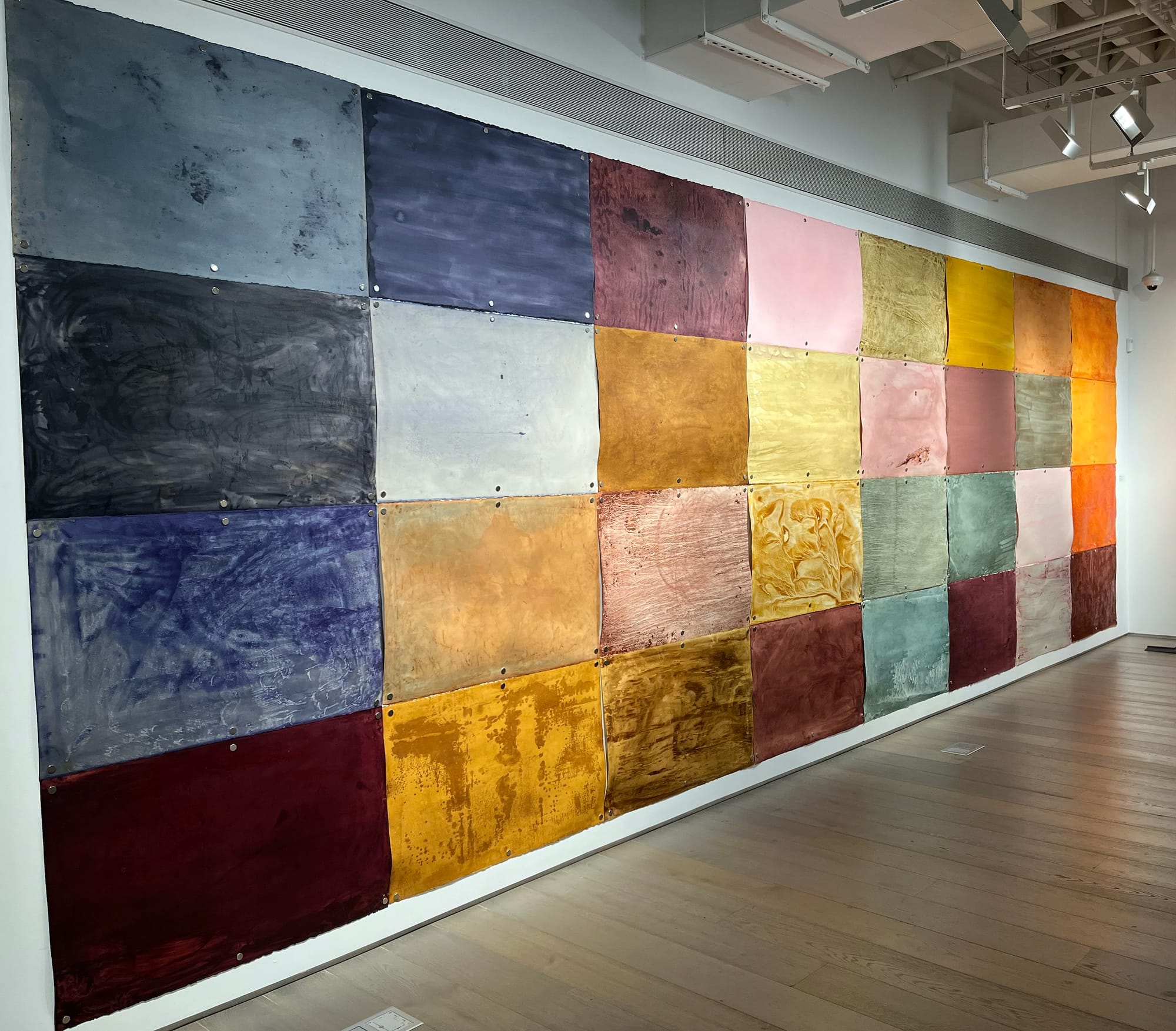 This communicative emphasis differs from that of the exhibition’s contemporary artworks, which operate in a more sensuous register. Sergio Vega’s short film, “Paradise Burning” (2008), employs one static, continuous take to portray wildfire as a thick, crackling envelope of flame and smoke. “Color Amazonia” (2017–21), Susana Mejía’s massive grid of monochromatic paintings made from pigments she created from rainforest plants, defies Minimalism’s typical austerity, and botany’s taxonomic orderliness, with its runny, ebullient colors. While contextual knowledge can enhance appreciation of such artworks (for example, as Amazon wildfires have increased in frequency, the rainforest has shrunk in size), their vivid aesthetics remain the point.