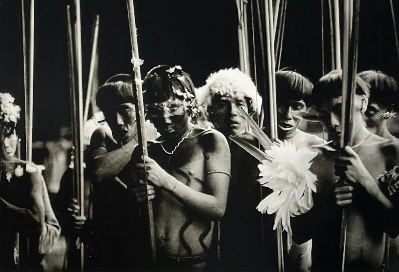 The opening section of Amazonia, a group exhibition of historical and contemporary art about the Amazon rainforest at Pratt Manhattan Gallery, presents a telling aesthetic contrast. Black and white photographic prints of Indigenous peoples line an entryway wall that opens out onto a gallery whose immersive sound installation and vibrant paintings depict the rainforest as a profusion of sound and color. Curator Berta Sichel and Assistant Curator Patricia Capa wisely argue that “environmental problems require analysis in cultural as well as scientific terms” and their distinct selections highlight art’s peculiar analytic strengths and limitations.