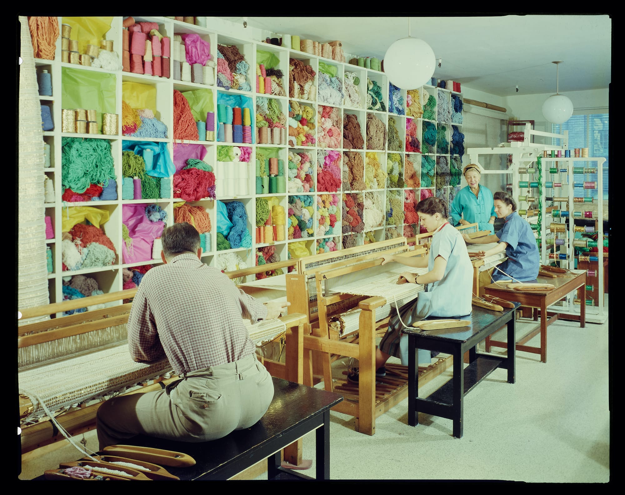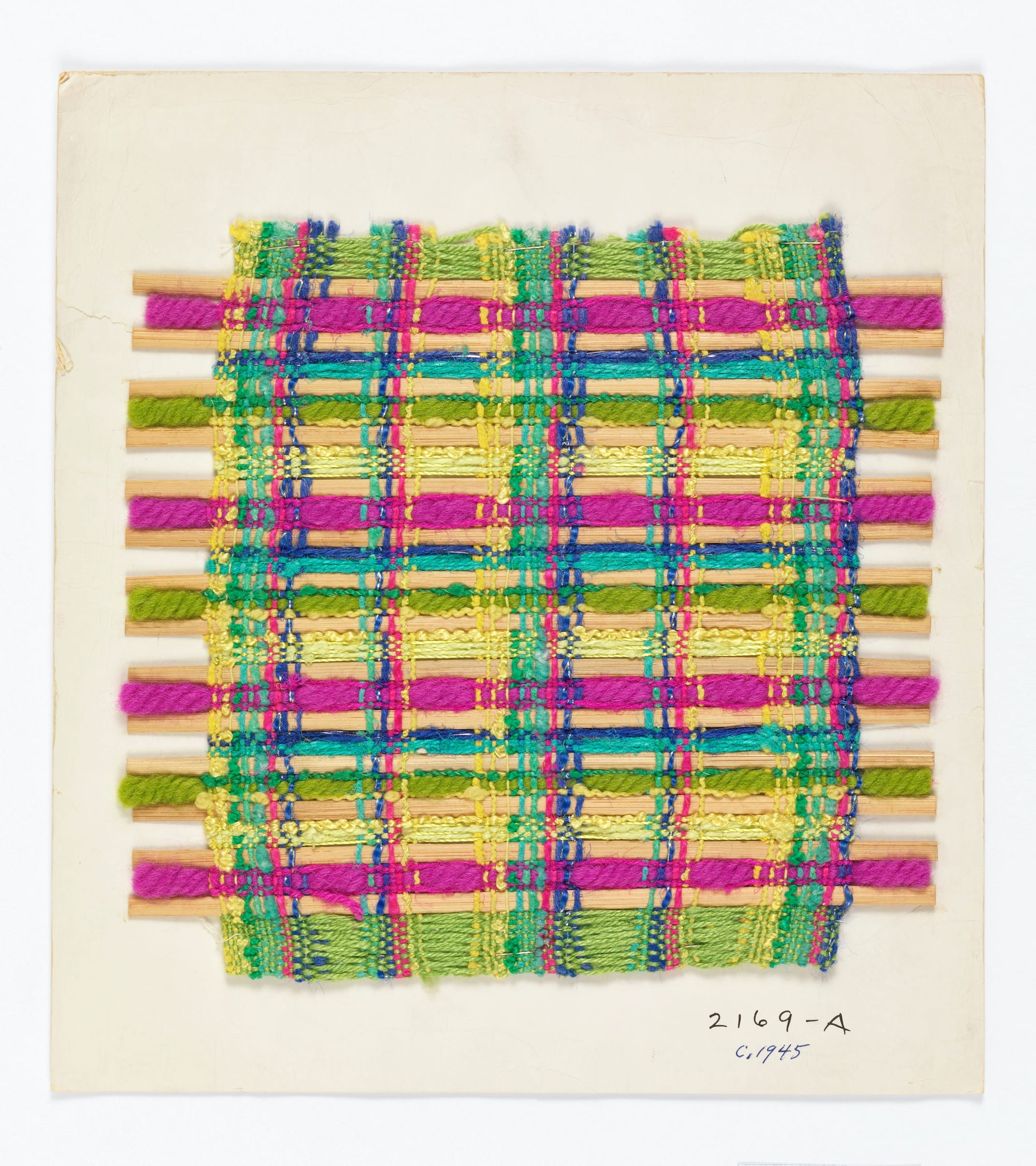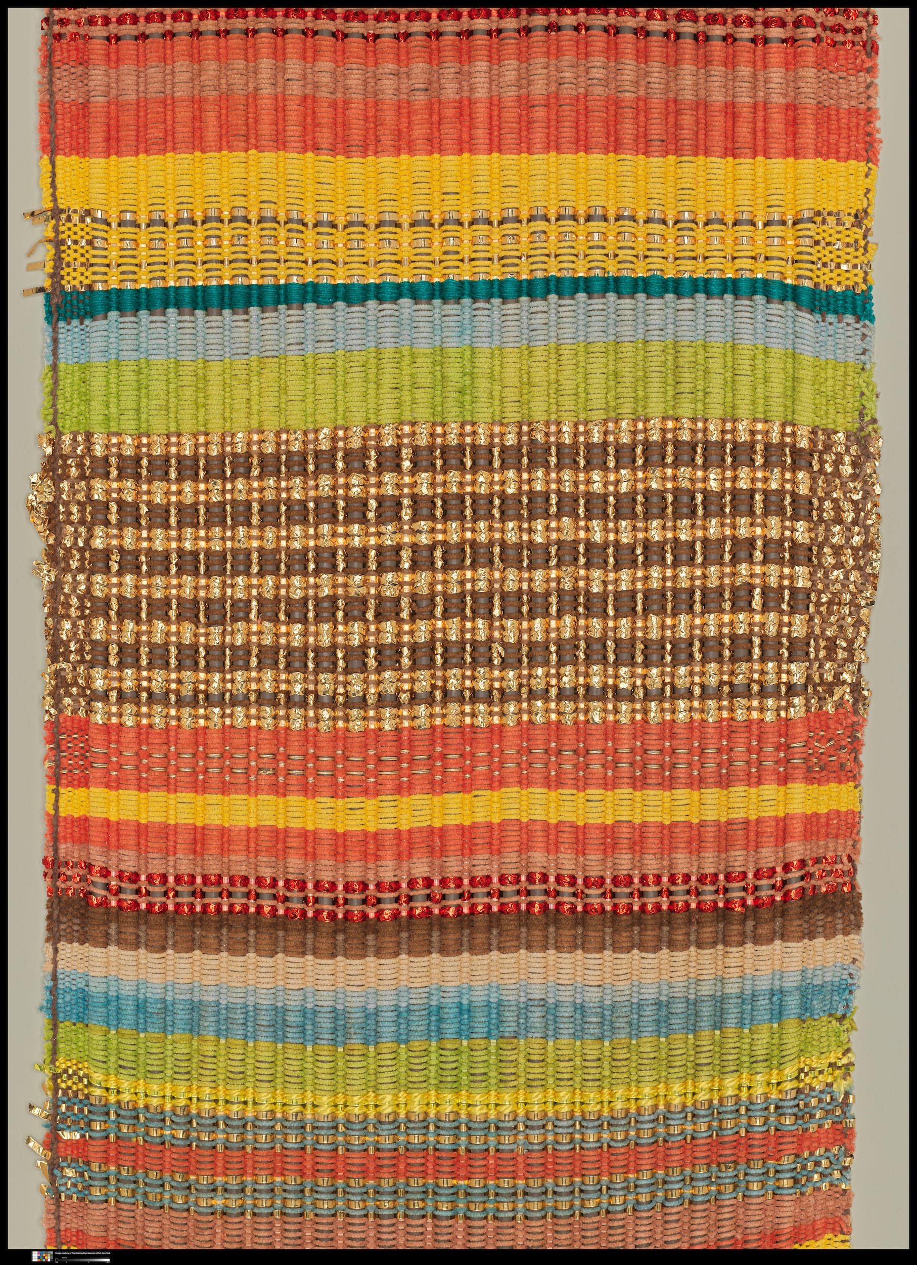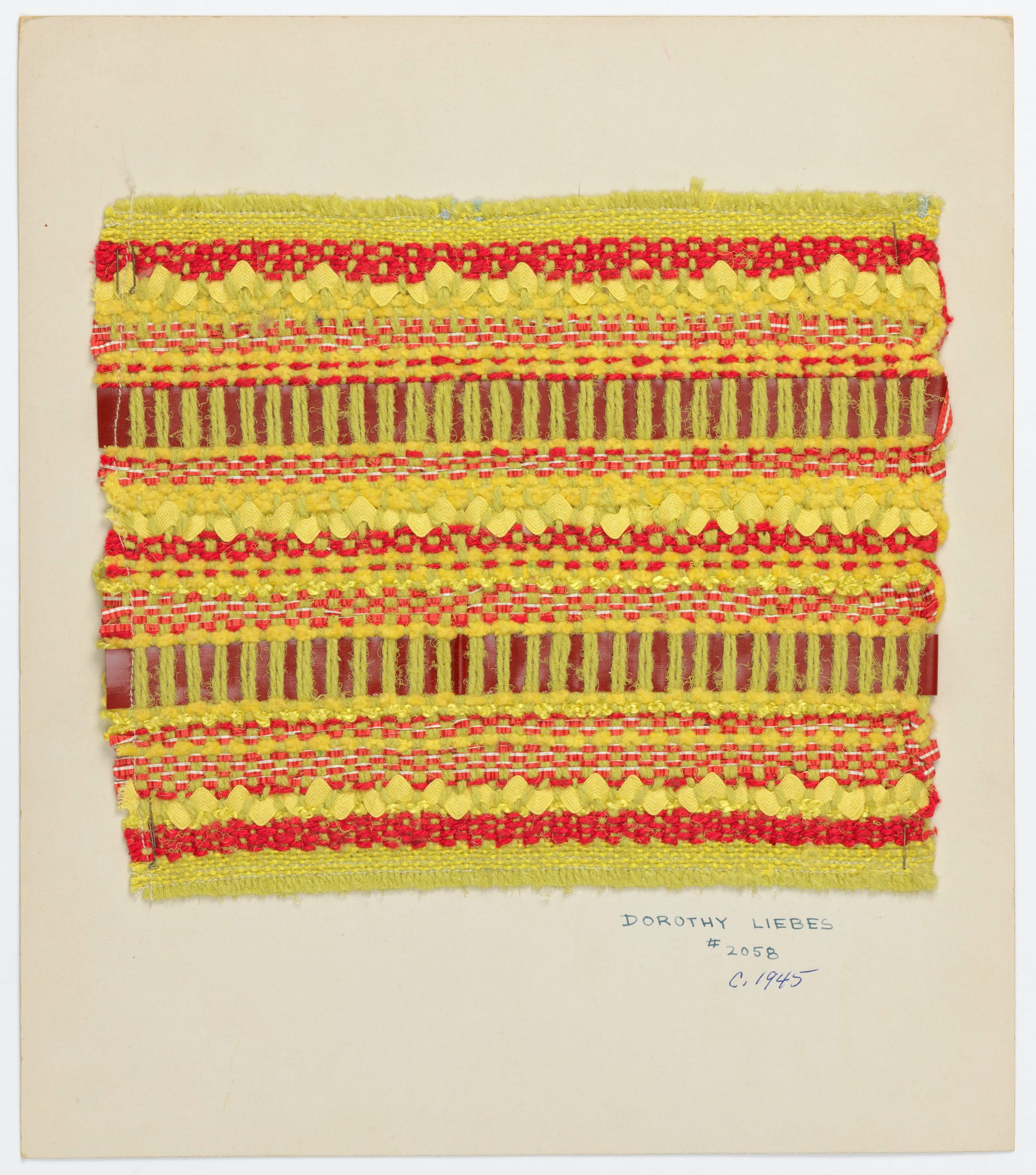 The book and the museum and online show draw extensively from the Smithsonian archives’ Dorothy Liebes Papers to give an overview of her expansive career. Sections explore the weaver’s contributions to modern interior design, film, and fashion, as well as hand weaving and the textile industry. More than 175 pieces — including a trove of woven samples, apparel, furniture, photos, and videos — spotlight the trailblazer’s distinctive chromatic and material sensibilities, and her abundant, and overlapping, occupations. Known as a leading designer-weaver, Liebes was also a colorist, stylist, trendsetter, industry spokesperson, educator, mentor, and global craft ambassador, adept at interpreting and responding to trends and innovations that emerged throughout the heart of the 20th century.