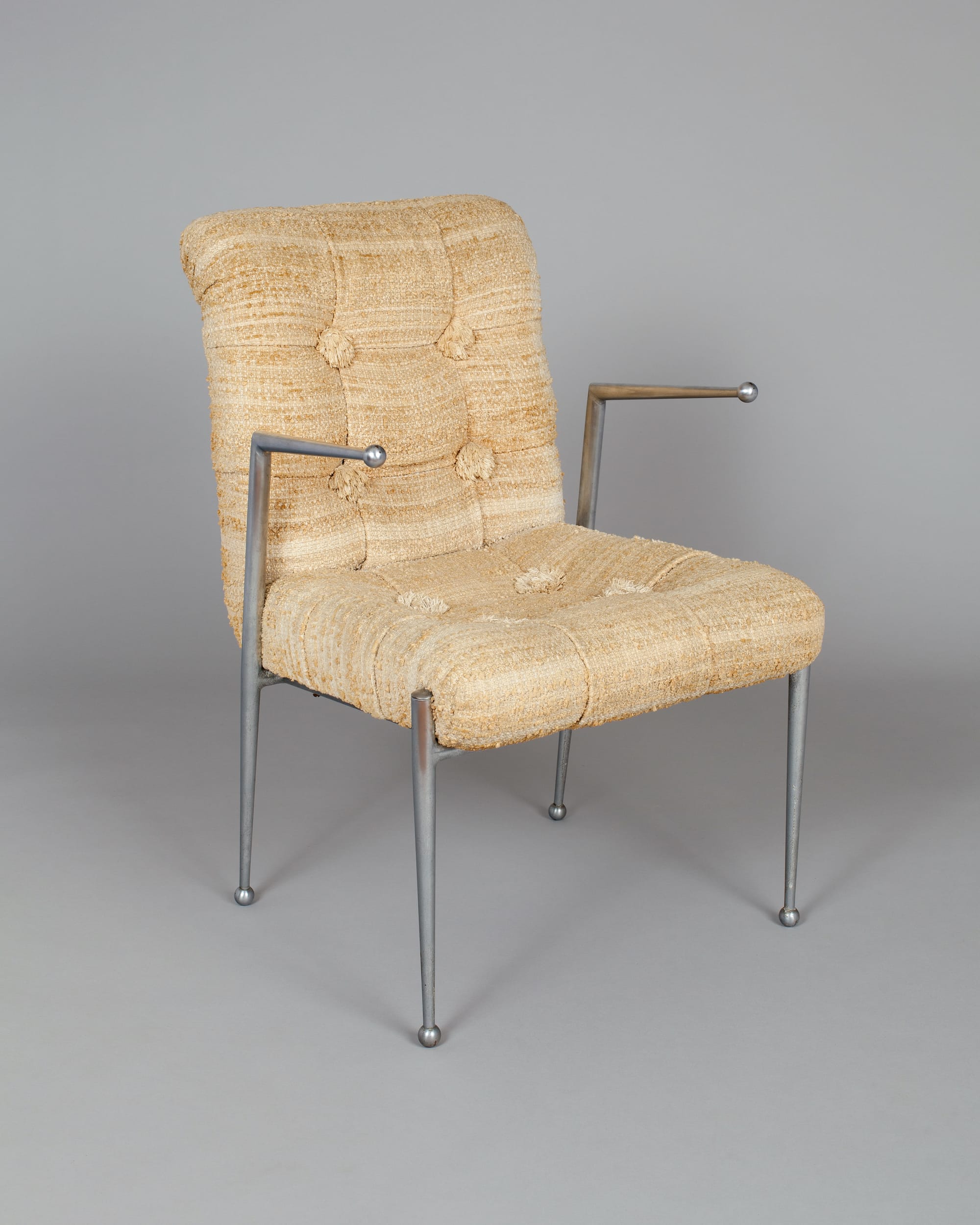 Renowned for her fabrics woven from unconventional materials in glimmering, color-saturated palettes, weaver Dorothy Liebes loomed large in 20th-century design. Her inventive fabrics could be found just about everywhere: covering the seats of airplanes and cars, aboard ocean liners, in theaters and hotels, stretched across radio speaker grills. Her bespoke, hand-loomed window treatments and wall coverings adorned high-profile spots like the United Nations headquarters, the Plaza Hotel (featuring curtains with tiny electric light bulbs!), and buildings by Frank Lloyd Wright. Fashion designers deployed her fabrics in their haute couture, and in Hollywood her textiles appeared in costumes and light-refracting set pieces. Popular, mass-market furnishings with her signature “Liebes look” — including upholstery, area rugs, curtains, and wallpaper — became staples of stylish American homes.