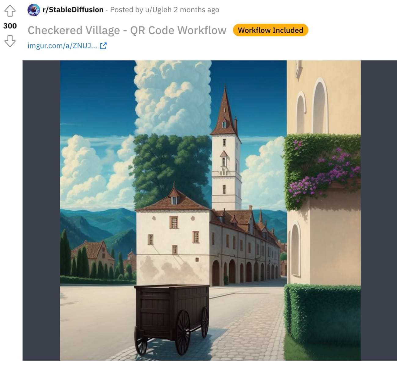 The two images of Medieval towns were made by Ugleh using QR Monster, an add-on tool to Stable Diffusion. QR Monster is based on ControlNet, a “neural network architecture” developed last February by researchers that allows Stable Diffusion to be more precisely conditioned and controlled.