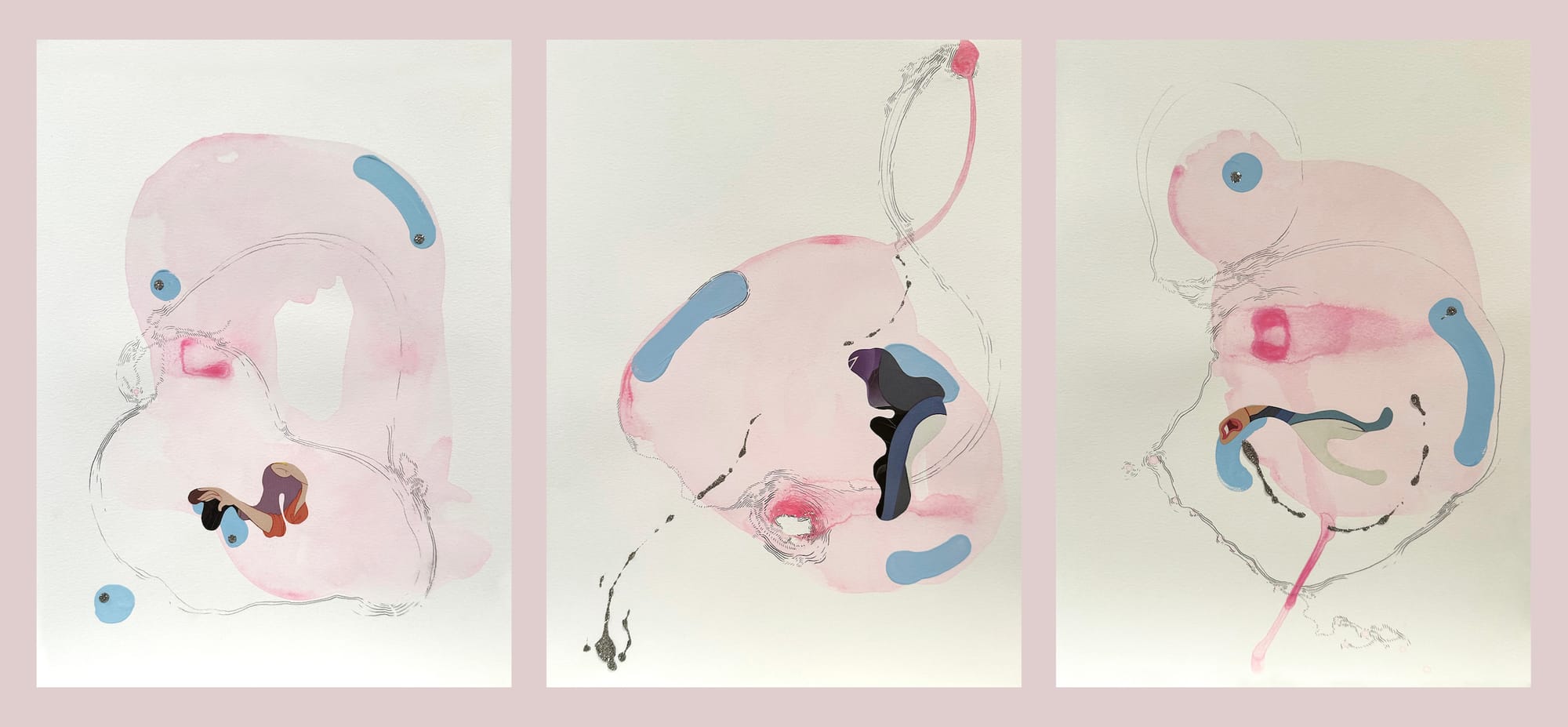 Catalina Schliebener, "Untitled #1, 2, 3 (9 minute series)" (2022), watercolor, gouache, graphite, and glitter on paper, 11 x 15 inches (courtesy the artist, permission for use by the National Academy of Design)