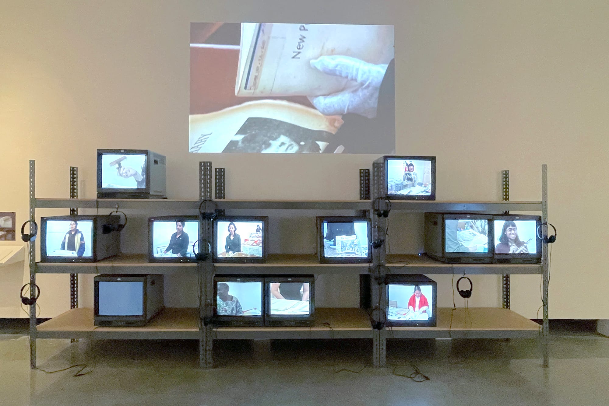 While the majority of CalArts students at the time were White women, The Feminist Art Program addresses the common critique of second-wave feminism, its lack of diversity and intersectional criticality, by drawing connections between the program and subsequent generations of women of color who studied at CalArts. The exhibition highlights artists who applied CalArts pedagogy in minority-run art spaces; for instance, Linda Vallejo, a Chicana artist and one of the few women who launched the Latinx printmaking studio Self Help Graphics & Art, was deeply involved in curating performances at the Woman’s Building, a feminist art space founded by Chicago, Sheila de Bretteville, and Arlene Raven in 1973. Though technically an independent institution, the Woman’s Building allowed CalArts students to leave their bubble in Valencia and disrupt the art scene 40 miles away in Los Angeles.