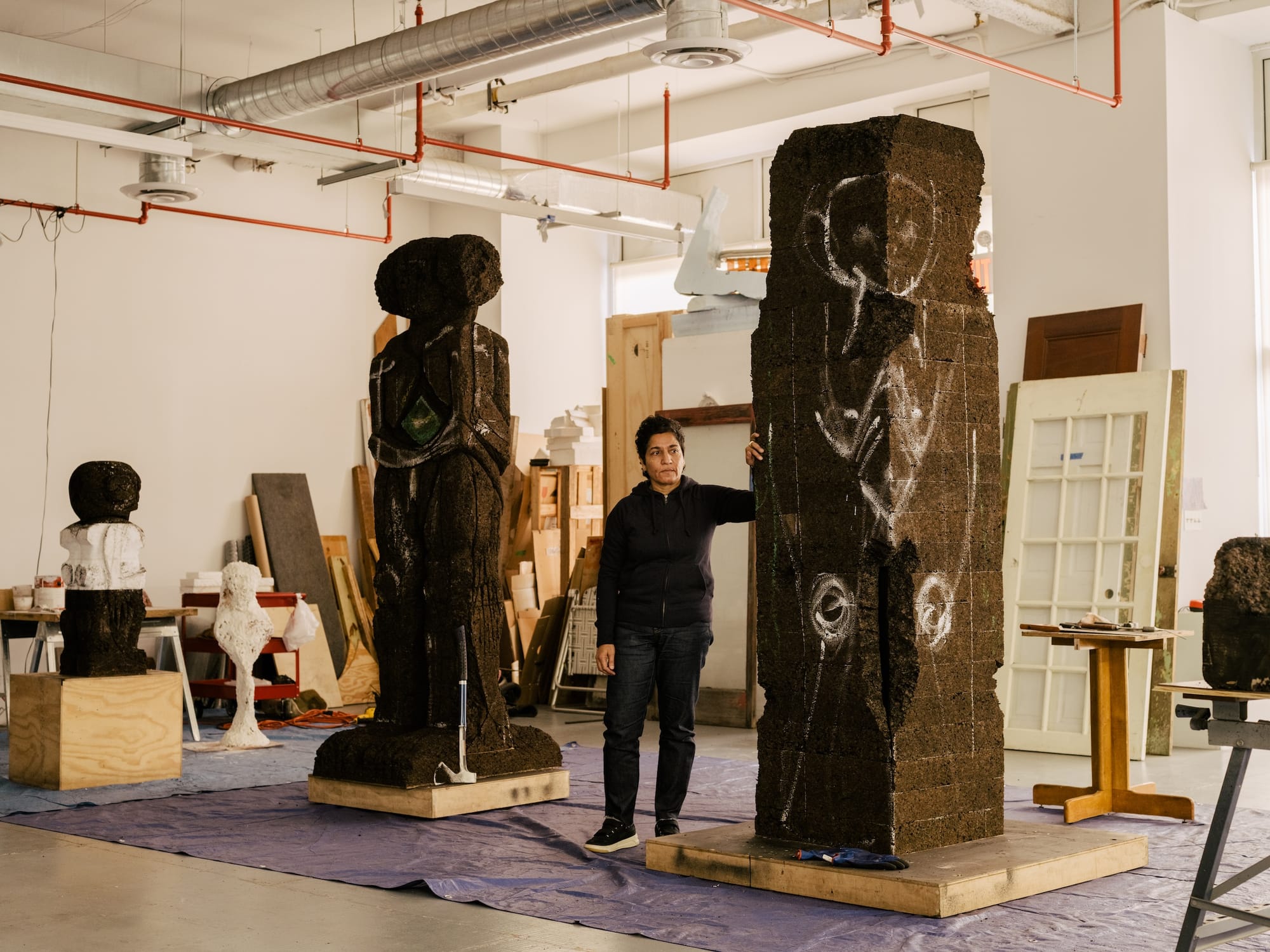 Rose B. Simpson imprints her memories, ancestry, and connection to the land in clay, metal, and other media that she engages in a deeply personal material practice. In Manhattan’s Madison Square Park, the artist debuts a group of large-scale sculptures modeled after the towering figure of the sentinel. Two life-size bronzes will grace Inwood Hill Park, a site inhabited by the Lenape through the 17th century before Dutch colonial governor Peter Minuit negotiated the acquisition of Manhattan Island in what is widely recognized today as an act of displacement.