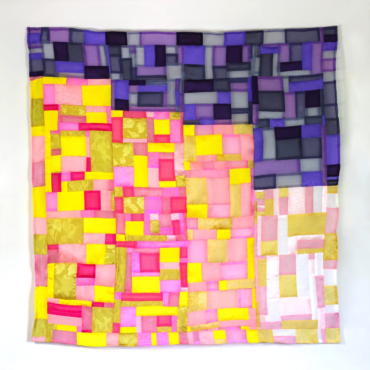 The lost work in question, entitled "AAPI Hate Affects AAPI Mental Health (71.7% of the respondents who experienced hate incidents during the pandemic report anti-Asian discrimination to be their greatest source of stress, much higher than any other pandemic concerns)” (2021), visually represents the aforementioned statistic through a variety of multicolored silk rectangles stitched together to resemble a bojagi, or Korean wrapping cloth. The piece was displayed alongside another work of Kwon's addressing the uptick in transphobic legislation across the United States, underscoring how race- and gender-based aggression are inherently connected.