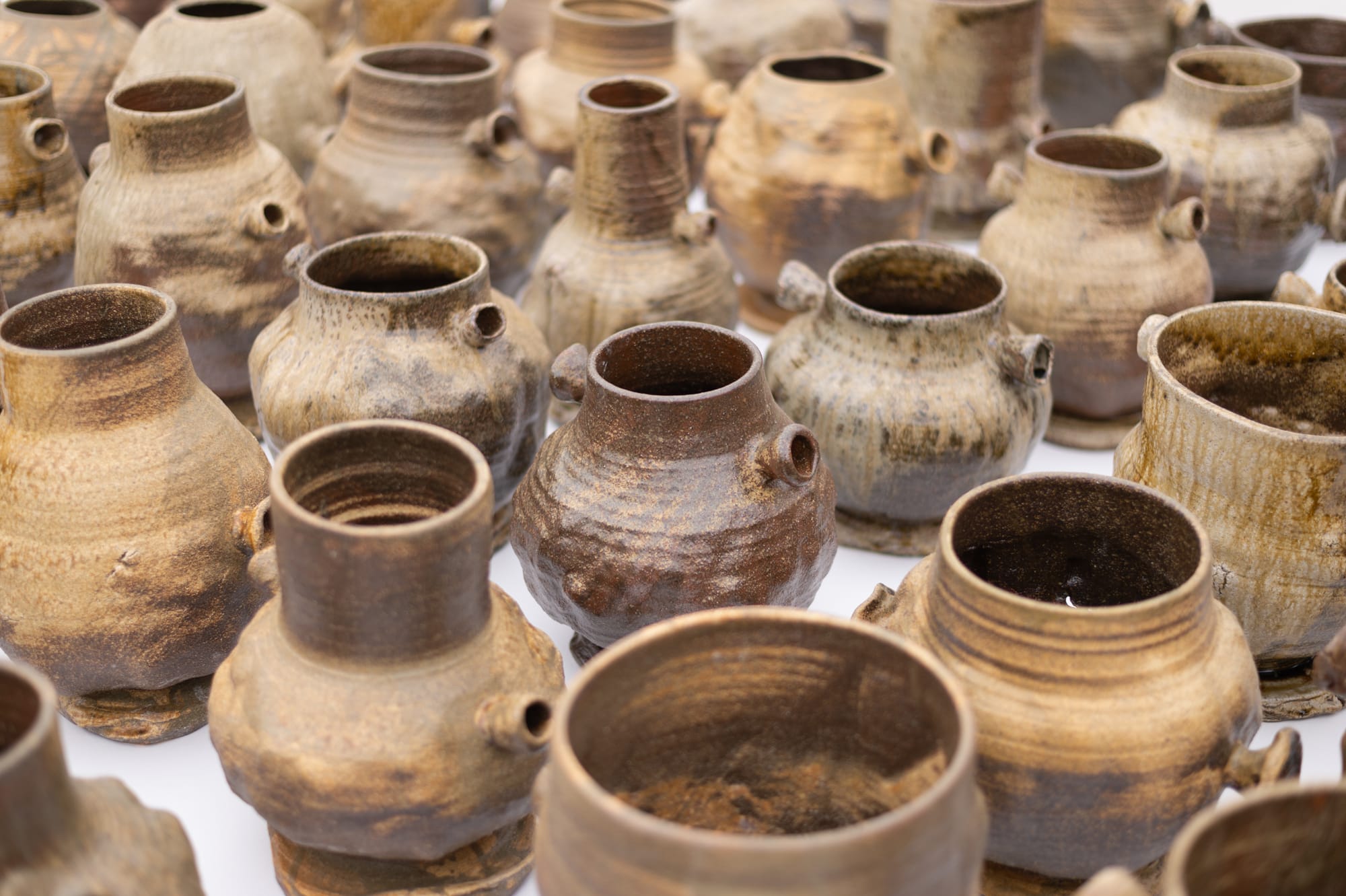 With the aid of friends and colleagues from around the country, Silverman collected clay, wood ash, and water from all 50 states, five US territories (Puerto Rico, the US Virgin Islands, Guam, American Samoa, and the Northern Mariana Islands), and Washington, DC, 56 different locations in total. He then combined these elements into a uniform mixture which he used to glaze a humble set of 56 ceramic plates, 56 bowls, and 56 cups to be used in a series of simple meals. He explained that he envisioned the events as opportunities “to bring people together to have challenging conversations, not just a groovy dinner party.” Alongside this tableware, he created 56 ceremonial pots that embodied the essence of what would later become Common Ground. “If this project is about being open to new opinions and other people's ideas, the piece should be open,” he said. “The handles should be like ears, like these things are here to listen. It’s all very literal.”