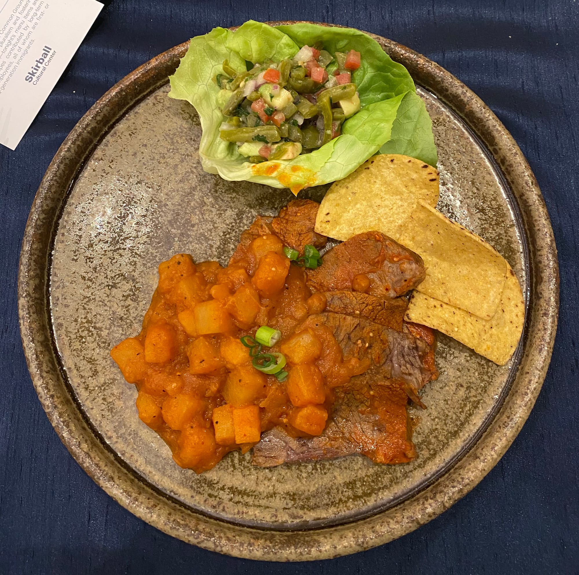 Earlier this year, the Common Ground exhibition opened at the Skirball Cultural Center in Los Angeles, where it will remain until January 5, 2025, with all 224 vessels on view in a cabinet designed by Kulapat Yantrasast, Bob Dornberger, and Shinsuke Ito. The Skirball also acquired the work for its permanent collection. Naturally, the show kicked off with a meal, co-organized by the Skirball's Vice President of Public Programs Marlene Braga and Senior Programs Associate Julie Gumpert. The menu featured dishes contributed by employees of the institution who had worked there for over 15 years, “using the project to look internally,” said Silverman. Each one reflected family memories, diasporic identities, and stories of migration from Mexico and Central America: a fish dish from Belize and Honduras, Guatemalan enchiladas, a bread pudding from El Salvador, and a cocktail inspired by a regionally specific torta from Leon, Guanajuato, Mexico.