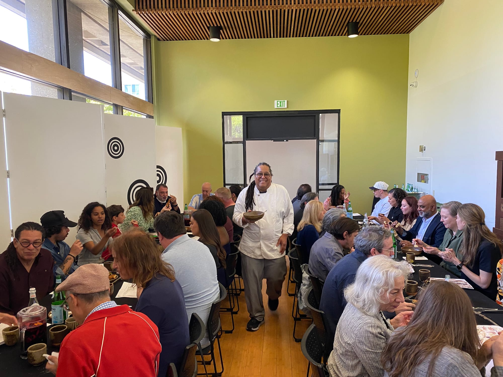 The tour began with a meal at the Japanese American Cultural and Community Center in Los Angeles, before bouncing between coasts for nine additional meals over the next two years. Each meal was unique, with distinct menus, chefs, participants, and topics of conversation. One particularly memorable event for Barton was at the Earvin “Magic” Johnson Recreation Area near Watts in South Los Angeles in September of 2022. “It involved architects, urban planners, community leaders, and faith-based leaders in Watts who are interested in bettering their community, but don't want to have it gentrified by outsiders, [as well as representatives from] LACMA wanting to have a stronger foothold in that community,” he said. “I think that, at least in that moment, people were open to listening and talking.”