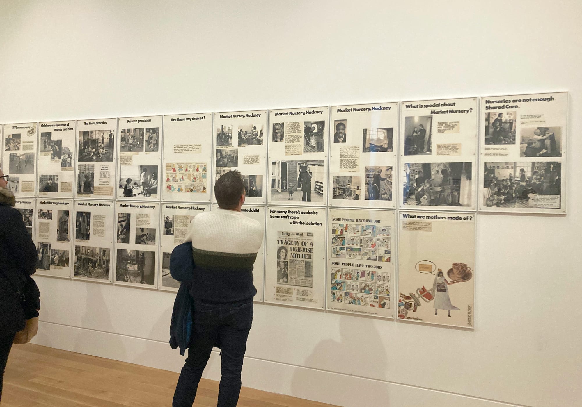 This show takes over the large ground floor galleries at Tate Britain and is crowded with material, the majority of it loaned — for whatever reason, Tate has not seen fit to welcome these artists until now. It’s also unusual for its reliance on documentary photos and archival material, including zines and ephemera. Plenty of works in the show were made for art spaces by the likes of Susan Hiller, Lubaina Himid, Claudette Johnson, and Sutapa Biswas, but they are shown alongside more photojournalistic work, like the series Who’s Holding the Baby? (1975), an investigation into the lack of childcare in East London by the women’s collective Hackney Flashers.