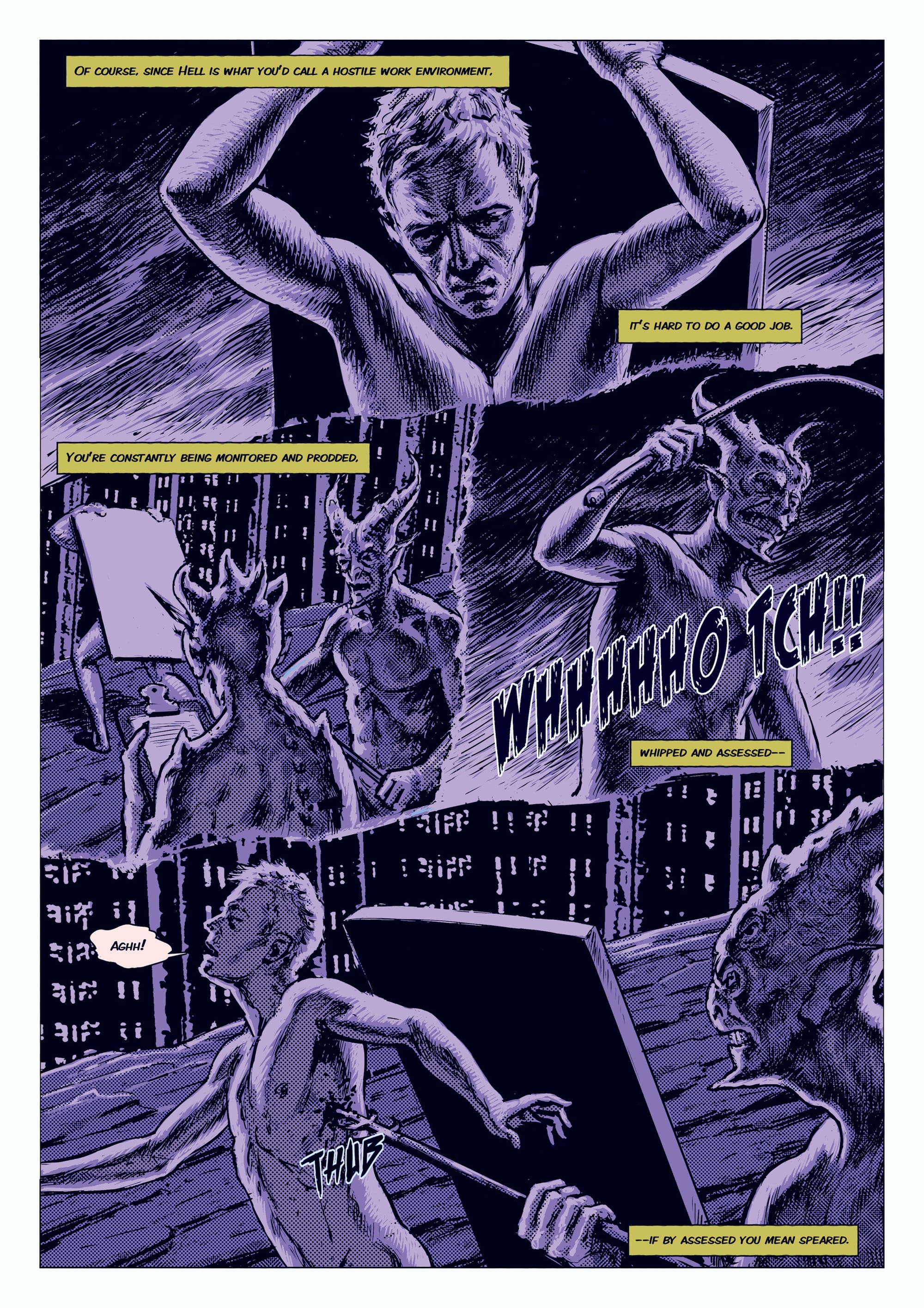Two aspects of the novel make it a work for the ages. First is the old-world draftsmanship. Rostovsky, a realist painter, hints at the musculature beneath each figure’s tortured skin (the residents of hell are naked) with exquisite hatching. His demons resemble Italian Renaissance grotteschi. When the camera pans out, it’s as if Caspar David Friedrich descended to a subterranean Alps and painted an infernal sublime.