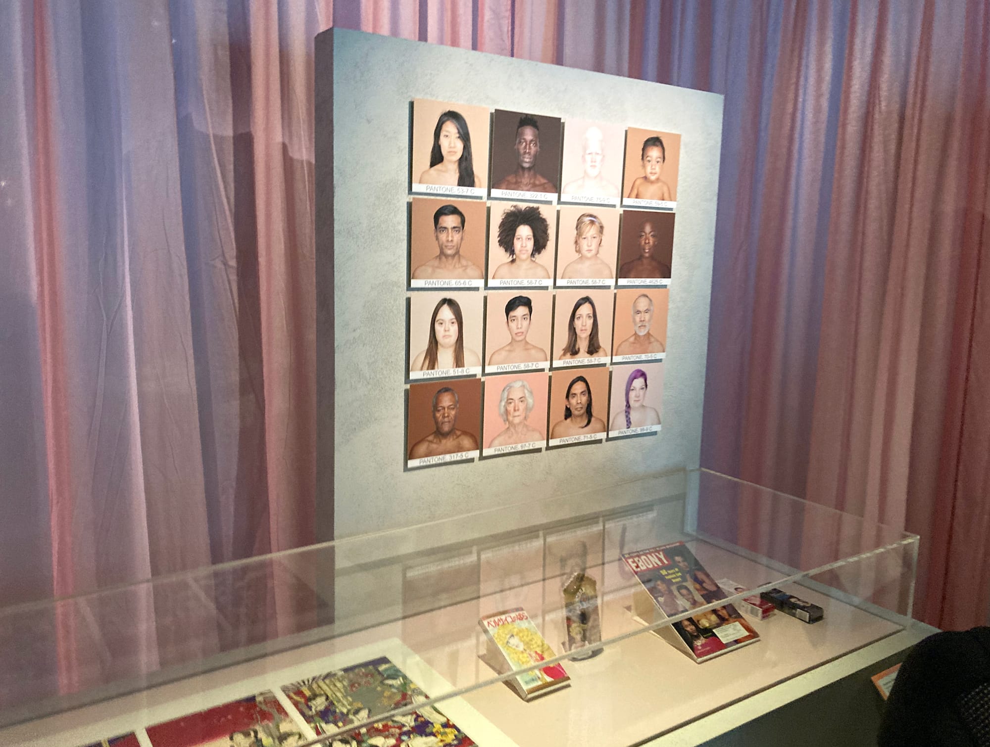 A section on racism and beauty, guest curated by the writer Emma Dabiri, focuses on contemporary and historical colorism and prejudice through objects like the Game of Goose, a bizarrely racist board game that originated around the 15th century where players “ascend” through different nationalities, getting paler as they go. The section’s limited attempt to show how beauty is cultural rather than universal is stymied by the chosen objects. Why use a copy of the “Rose of Versailles” manga to make an argument about blond hair and blue eyes becoming a beauty standard in Japan, when the story is set in 18th-century France and features entirely European characters? It’s interesting to see Josephine Baker’s “Bakerskin,” a darkening face powder sold to White Europeans who wanted to imitate her skin color, especially displayed next to the famously broad foundation shade range of Rihanna’s Fenty Beauty, but the show makes no reference to the appropriation of Blackness in so much contemporary beauty, and little about how Baker confronted and subverted the standards of her day.
