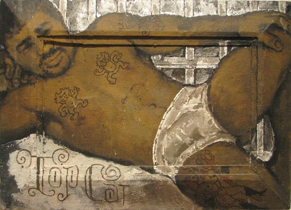 Martin Wong’s Everything Must Go at PPOW Gallery — The shows at the beginning of the year often get left off these top lists in favor of more recent fare that is still percolating in the minds of the art world. As soon as I saw this show last January I knew it would make an appearance on my year-end picks. Wong is an fascinating artist whose personal history is as intriguing as his art. He was the collaborator (and rumored lover) of renowned Nuyorican poet Miguel Piñero, a collector of graffiti, and a Chinese American who often integrated characters from the Lower East Side’s Hispanic community into his work. His art combines his era’s love of new forms of visual language with sexuality. His realistic style is often combined with hieroglyphic-like forms, including sign language, and decorative details to communicate American identities that were far from the mainstream. I sense that Wong’s work will look better and better as time goes by.