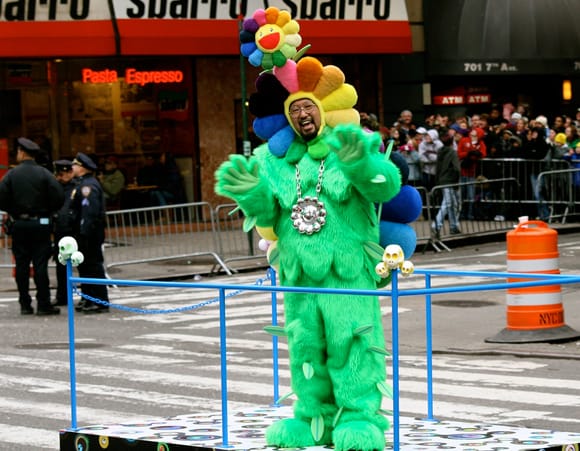 Takashi Murakami’s floral performance during the Macy*s Thanksgiving Day parade — Murakami is an artistic giant and his balloons for the famed Thanksgiving Day parade got most of the attention but his solo performance dressed as a giant flower just proved his genius — in other words, if the art world was a cruise ship he would be the guy whipping around in a blinged out speedboat. He hasn’t just collapsed high and low (if they even exist in his world), but he’s blended them into a milkshake and forces us to sip it every chance he gets. The dude is the high priest of something, I’m not sure what, but he’s the bigdogflower.
