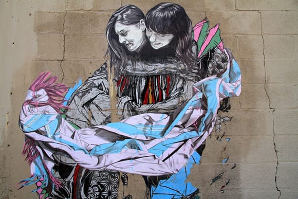 Specter’s Unwanted Collaborations/Sidebusts series around Brooklyn — This series was conjured up by one of the most talented street artists around, Specter, who hacked (is that what he did?) street works by Swoon, Bast, Skewville, Obey, and Faile. His additions were so well done that unless you knew the original artist’s work you may not have realized — and many didn’t, including some graffiti artists — that they were poking fun at the originals. We often talk about dialogue as an essential part of street art but this added a whole other level of editing, remixing, and critiquing to the public conversation.