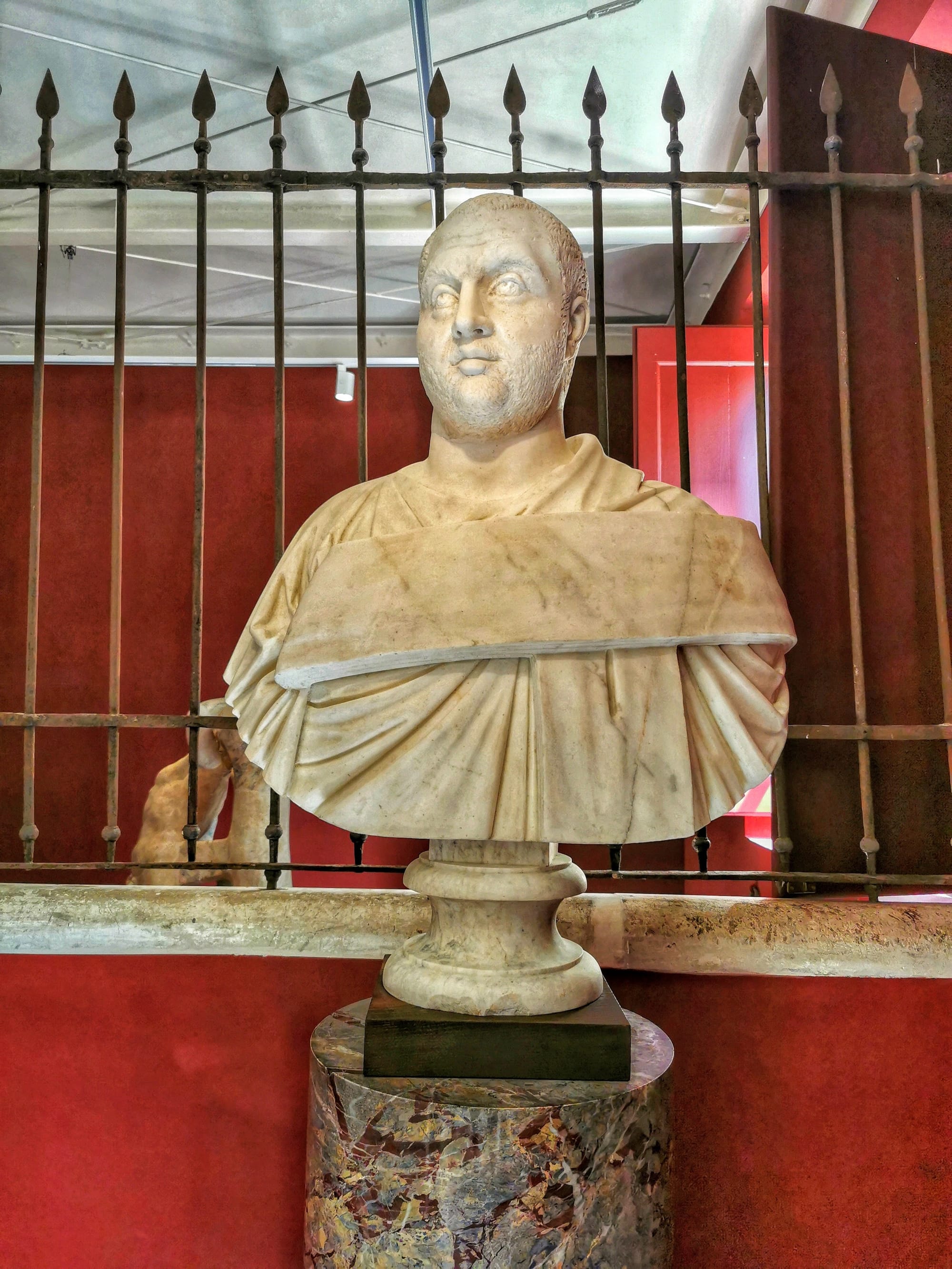Though the exhibition labels note that some identified the subjects as emperors Otho and Balbinus, due to the pervasive desire to assign identities to ancient portraits, neither portrait is really of them, but rather of unknown men. The marble head of so-called Balbinus is ancient. However, his chest and shoulders date to the 19th century, copied from the chest and shoulders of a sculpture in the Vatican Museums of another emperor, Philip the Arab.