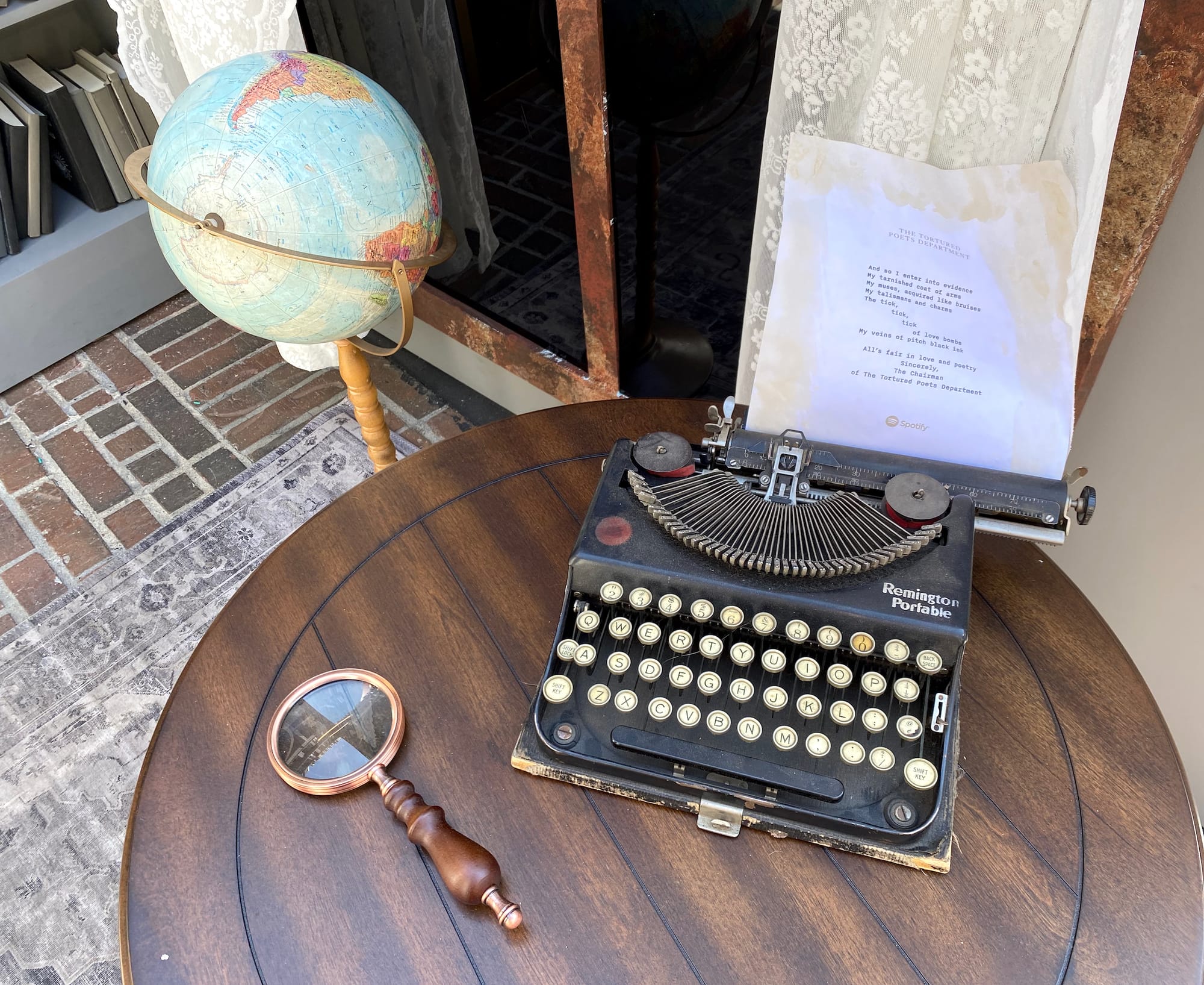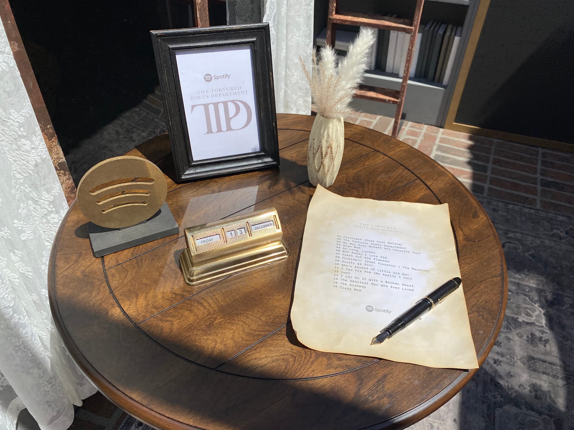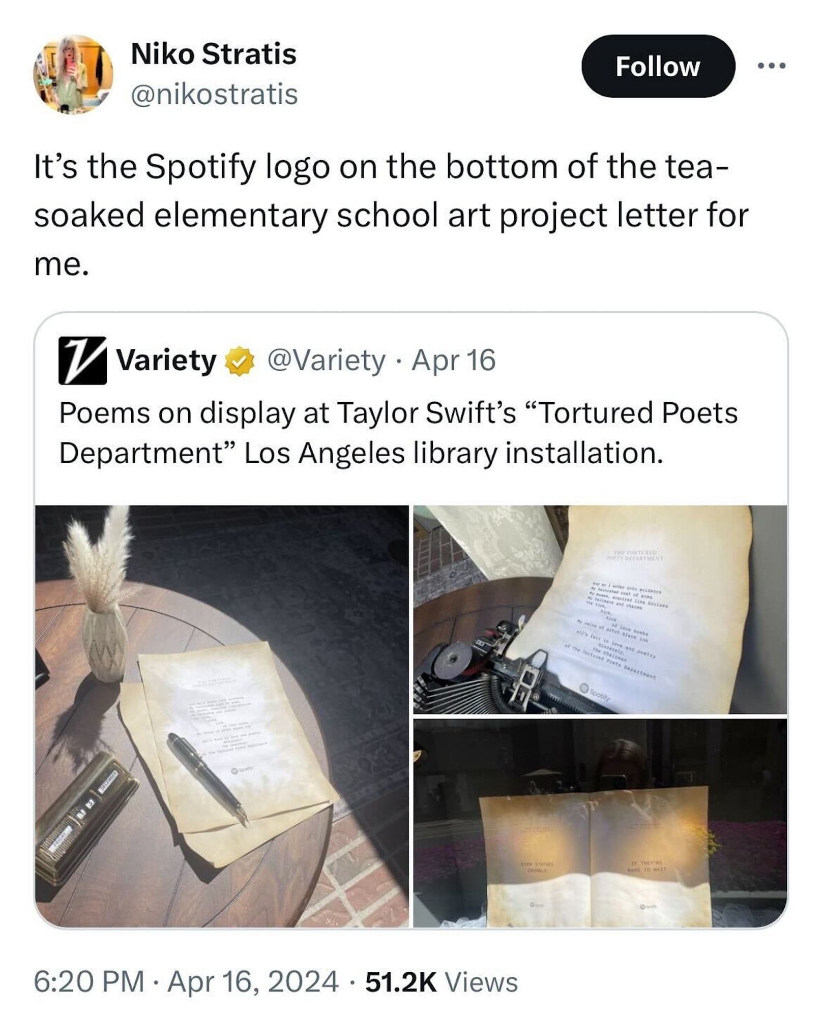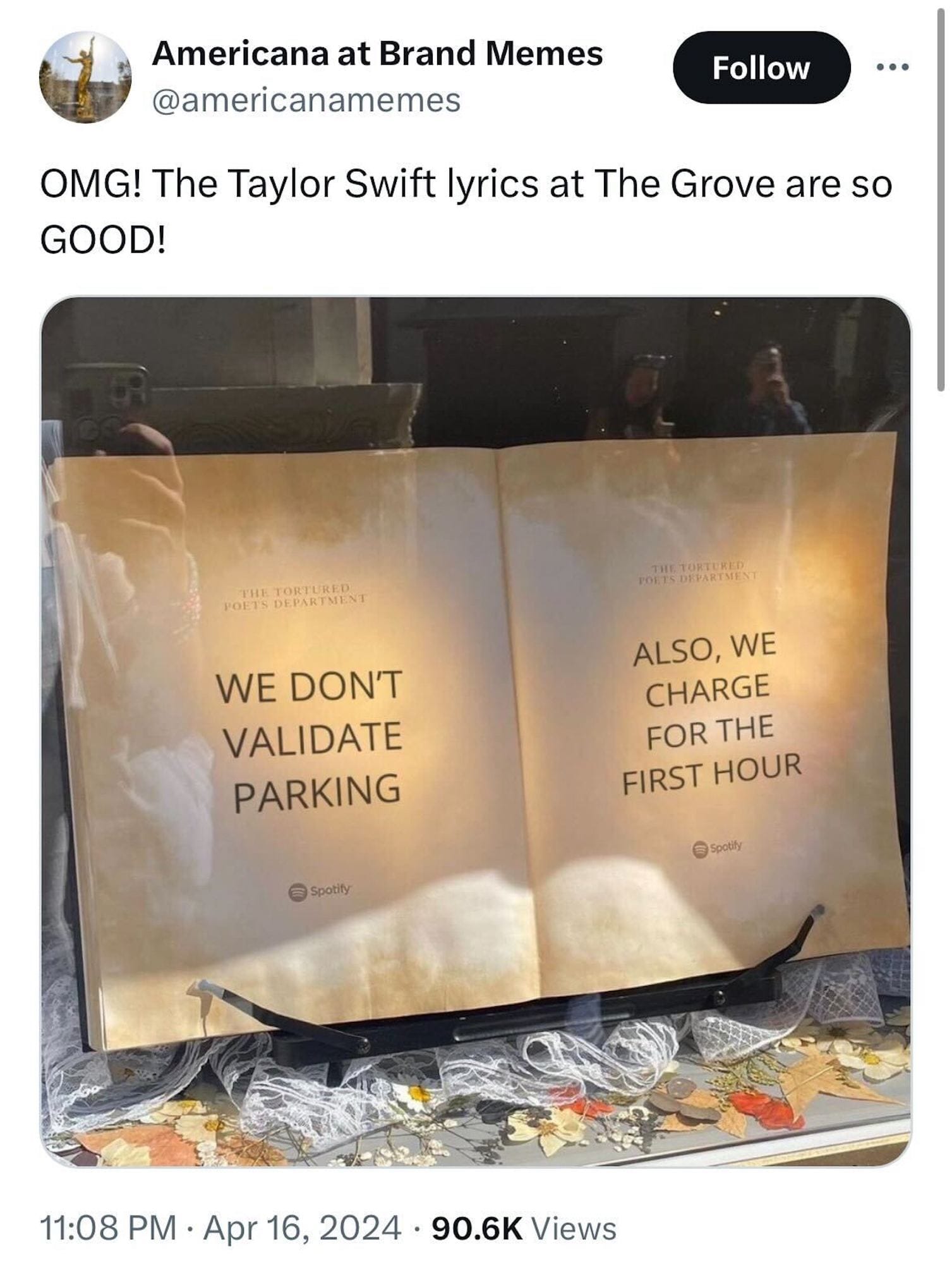 On X, users were quick to poke fun at the installation’s tea-stained lyrics, which misspelled the word “talismans,” with one person finding humor in the pseudo-artifacts’ inclusion of a faded Spotify logo: