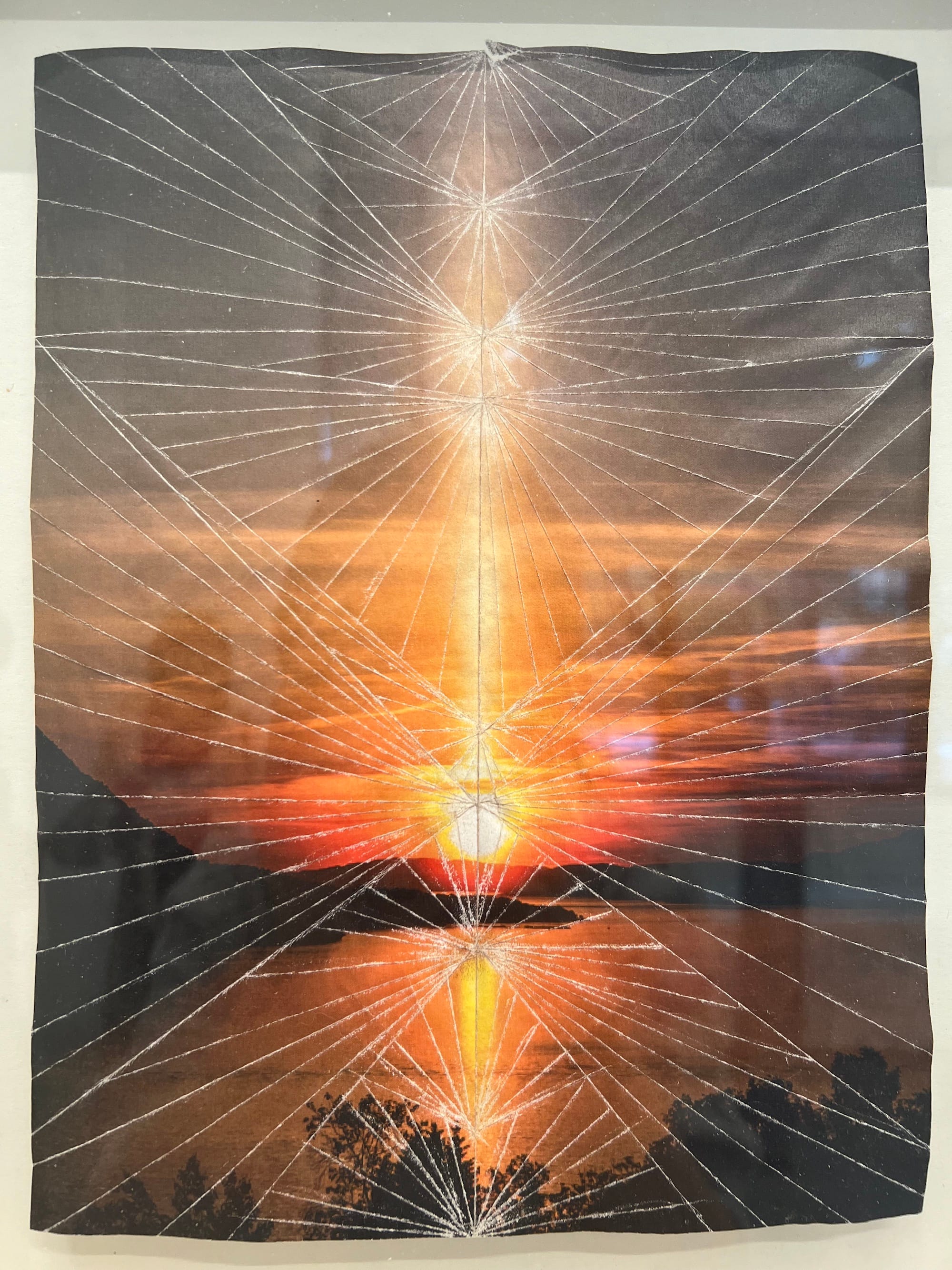 Spyglass, part one of New York University's (NYU) annual MFA thesis exhibition, opens with a work that showcases its own making. Robin Gammons’s "Foldings" (2024) feel like old memories, often revisited, occasionally rewritten. Laser prints and newsprints, largely of landscapes and sunsets, are folded so that their creases carve intersecting lines throughout the composition, isolating certain passages in the same way that the mind retraces a particularly important recollection. It brought me back to childhood: cat’s cradle, origami cranes.