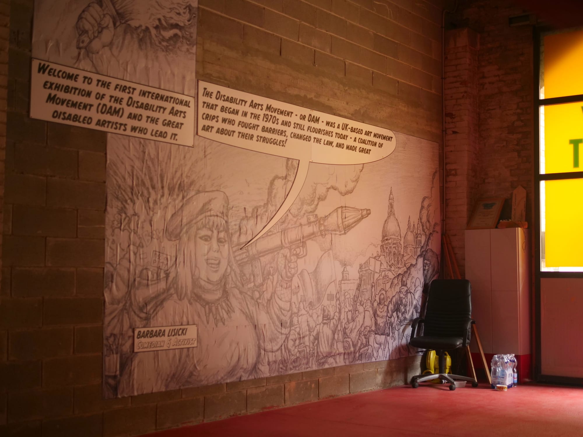 The entrance to Crip Arte Spazio declares that it’s the first international exhibition of DAM, which makes it an exciting milestone for both art and disability justice. The title means “Crip Art Space,” and among many disabled communities, “crip” is used as a reclaimed slur.
