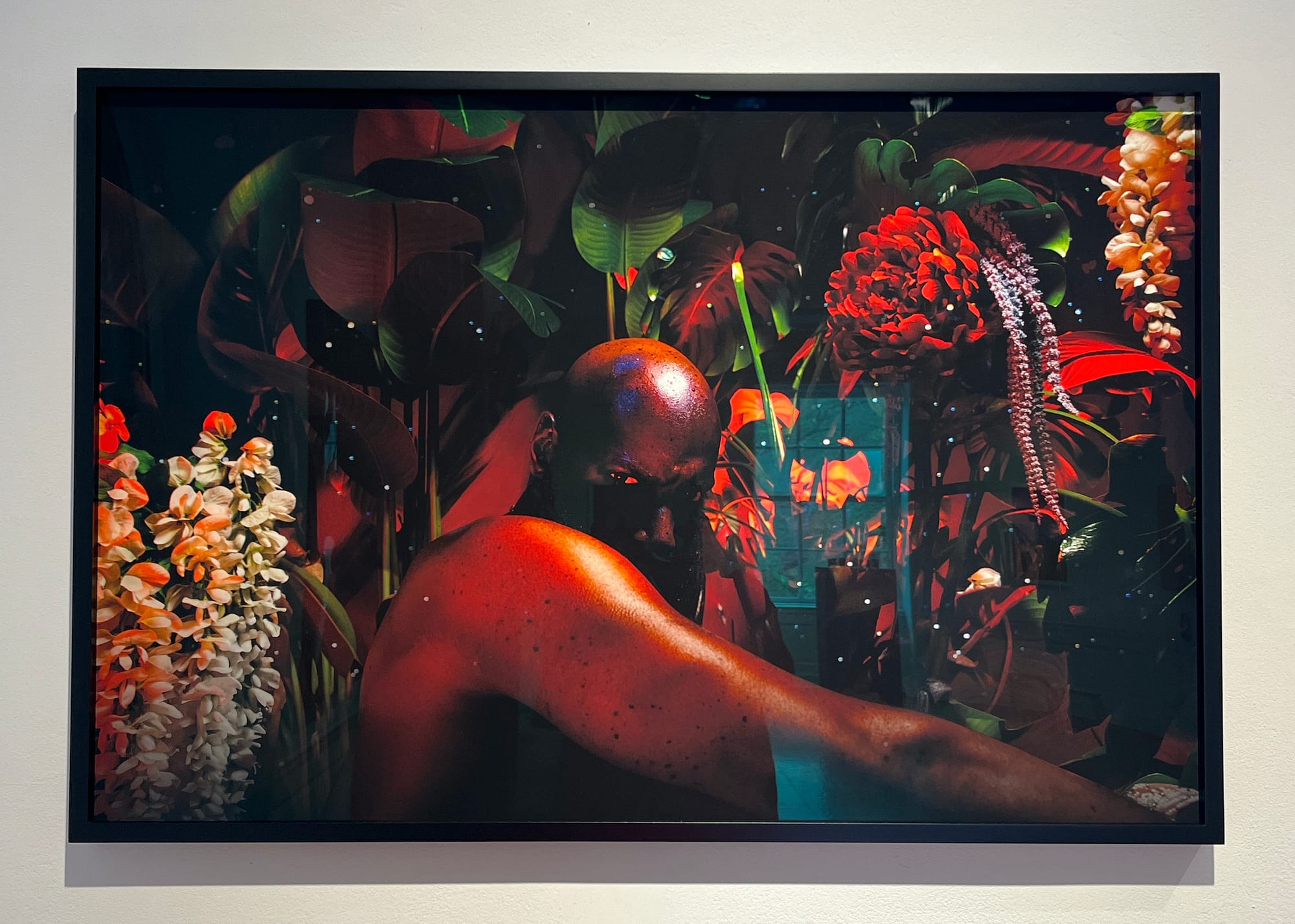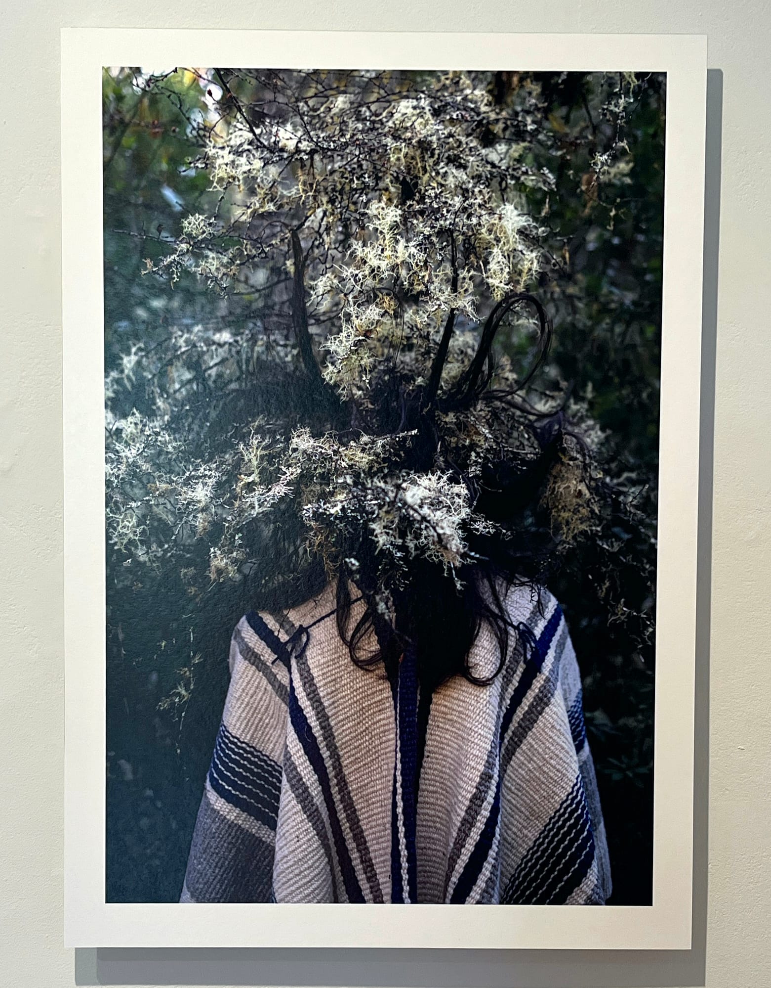 Seba Calfuqueo's photographs and videos oppose barriers and boundaries of many kinds: the separation of humans and nonhumans, the uses and adaptations of native and non-native species, and whether ever-flowing water can constitute a territory. The latter is particularly relevant because Calfuqueo's traditional Mapuche lands, Wallmapu, span parts of what is now southern Chile, a country whose government under dictator Augusto Pinochet brought about an ongoing water crisis by privatizing water. Christopher Udemezue’s photographs, often in sculptural frames, evoke ritual, sex, desire, and secrecy within plant-filled spaces where the boundaries between bodies, plants, earth, and sacred acts are enmeshed. Udemezue’s works both invite and challenge the viewer's gaze: What are you looking at? Is it for you? And what can you really know about what’s happening here?