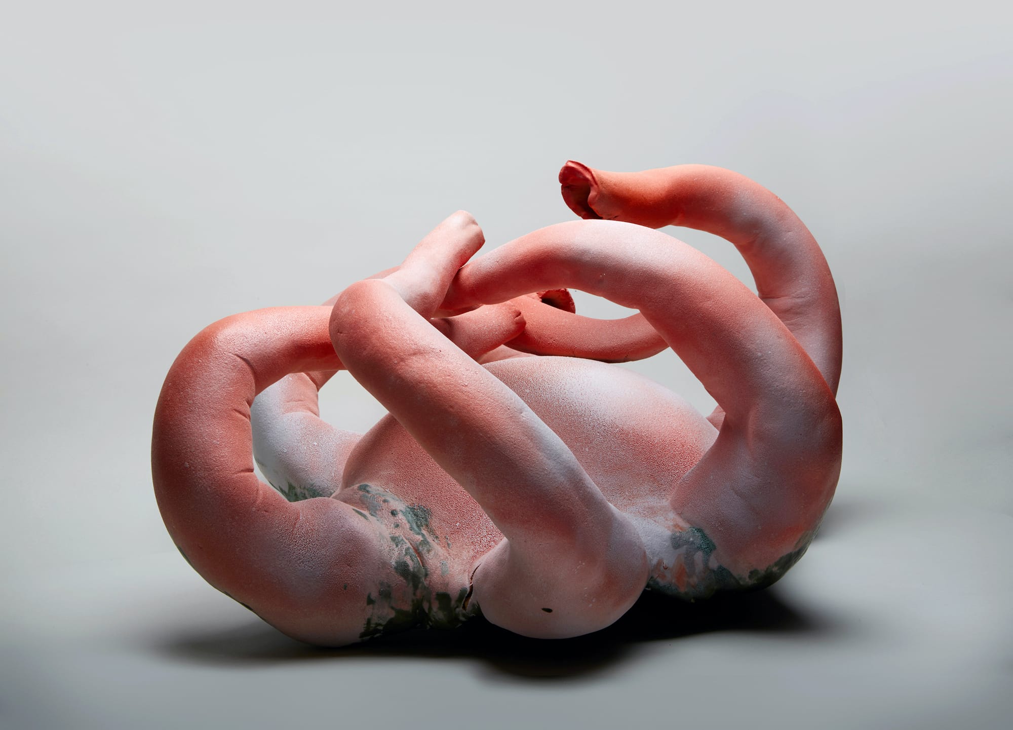 “Pixerina Witcherina” was the name of Virginia Woolf’s secret language of play, and serves as inspiration for this show of three women artists. As curator Julie Heffernan describes it, the exhibition is a celebration “too muchness.” If one takes “too muchness” to allude to the abundance of one’s interiority, then these three offer up the splendor of their inner lives. Former book and fashion illustrator and renegade tattooer Ruth Marten’s surrealist-inspired gouache on photogravure “#47” (undated), for instance, depicts a naked woman in a dream-like, dirt-laden environment, her body softly covered in silky snow. A series of works by Joan Bankemper are carefully crafted using hundreds of molds from both antique and modern found ceramic objects: The ornate “Wicker Park” (2017) embodies a colonial style with a contemporary twist. Taking the “too muchness” concept even further, a series of dynamic sculptures and ceramics by Jenny Lynn McNutt are curiously cute in their blending of familiar creatures and ambiguous forms: Works such as the clay “Inanna” (2017) reimagine animal lore as grounded in biology.