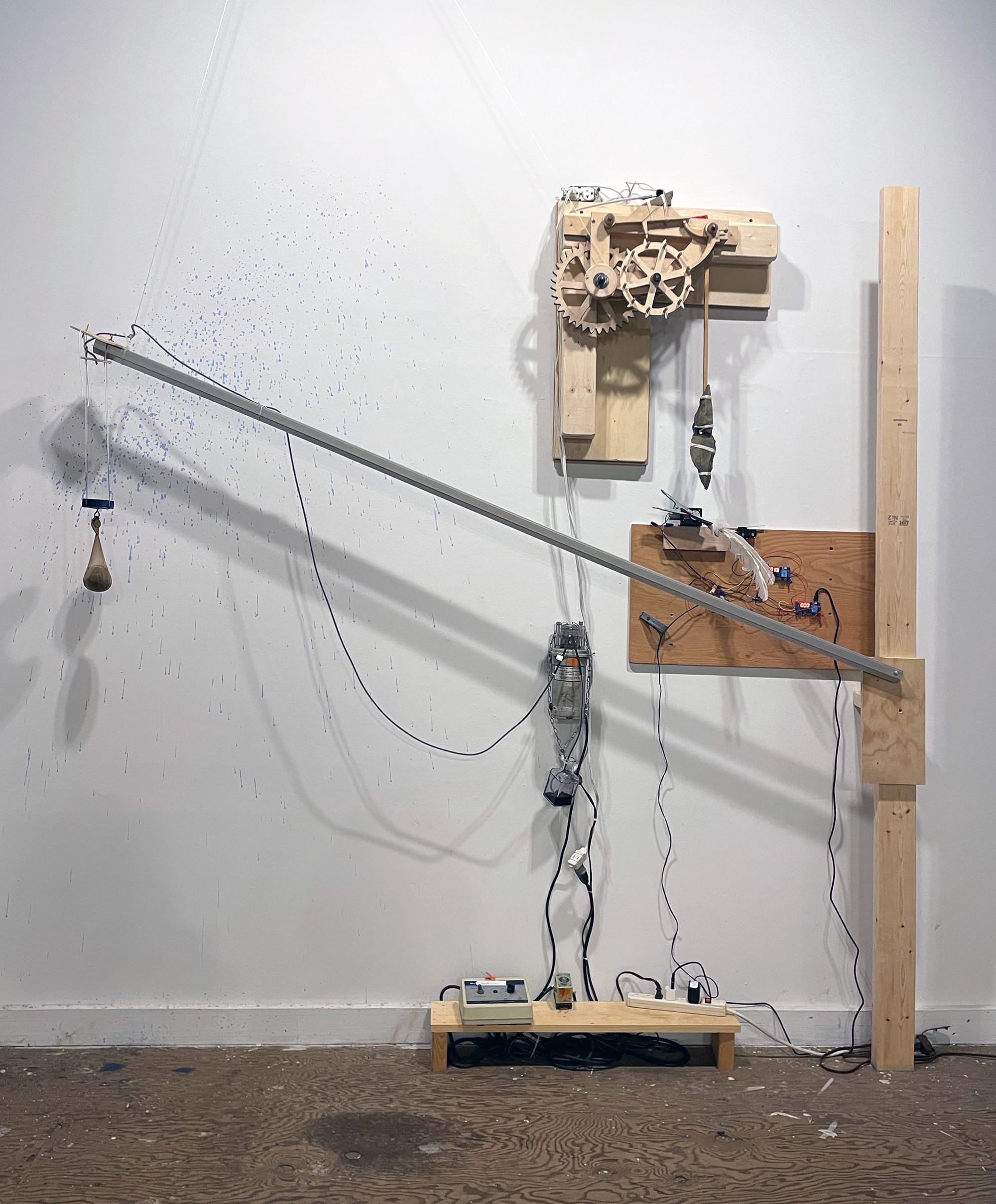 Tinkering is the birthright of every artist. capillar presents carefully tinkered sculptural pieces and memory-infused installations by Bill Schuck and Itty Neuhaus, respectively. This show also reflects the ongoing timber of their relationship: The pair met in 1994 at an art opening in the SoHo neighborhood of Manhattan, and have since developed a union that, in their words,“resemble parallel raindrops landing in a pond forming two adjoining ripples radiating outward.” In Schuck’s automaton-like sculptural assemblages such as “stepwise” (2024), miscellaneous objects are interconnected within a structure, like a robot with an art-infused heart. Neuhaus’s self-described “scratch-work” technique adds graphical dimension to layered landscapes. Works such as “Kaaterskill Falls in Loooooove” (2024) seem almost alive, a backlit film suggesting water surging forward.