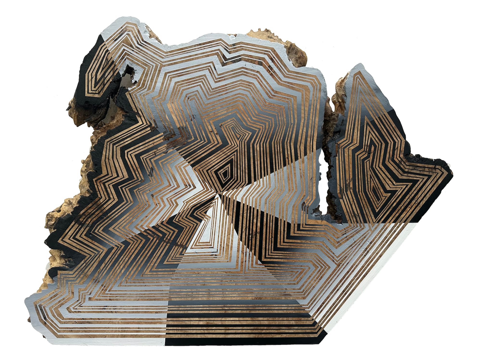 The group exhibition second nature, curated by Karlyn Benson, is a joyful ode to the endless stimulation offered by the diverse landscape of New York. N/A Project Space, which is seasonal by design, is dedicated to showing women and Upstate artists; this show presents the work of seven artists based in the Hudson Valley who celebrate nature through diverse mediums while calling attention to the delicacy of those shared ecosystems. Mollie McKinley’s “Enter Through Smoke” (2023), for example, positions an egg-shaped rainbow-toned piece of blown glass atop a lump of carved and charred salt, suggesting an elegant yet unstable arrangement. Kathleen Vance’s “Traveling Landscape: Long Black Case” (2019) uses reclaimed luggage as a vessel to both present and protect a robust slice of Mother Earth, while Jason Middlebrook’s “Defining My Grain in Black and White Terms” (2022) consists of a geometric pattern in acrylic on curly maple wood, reminding us that nature is the ultimate architect of all things.